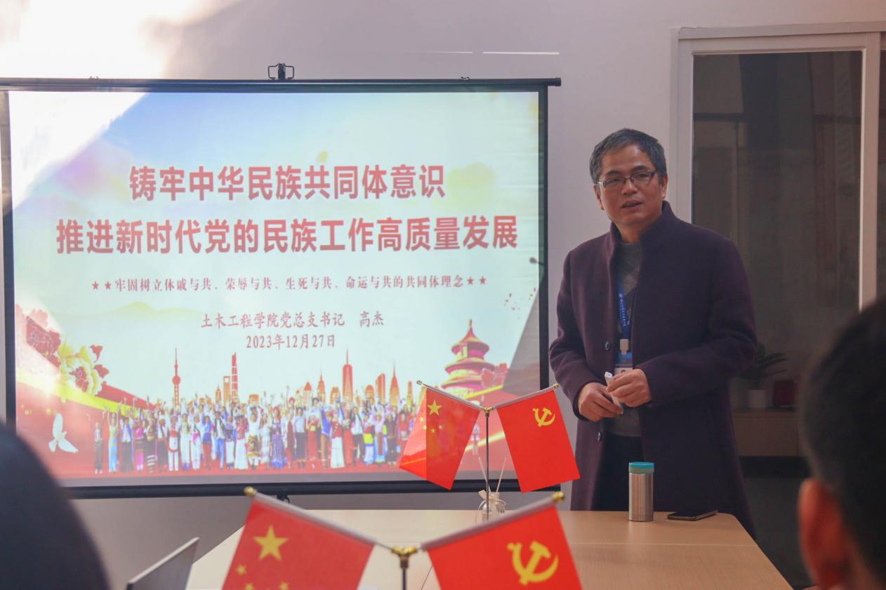 為學習貫徹習近平新時代中國特色社會主義思想和黨的二十大精神,進一步加強和踐行社會主義核心價值觀,大力弘揚愛國主義精神,不斷加強民族團結(jié)進步教育,共同鑄牢中華民族共同體意識,2023年12月27日下午,土木工程學院黨總支書記高杰同志在福航園“一站式”學生社區(qū)服務(wù)中心思政引領(lǐng)室以《鑄牢中華民族共同體意識,推進新時代黨的民族工作高質(zhì)量發(fā)展》為主題給青年學生上專題思政課。
