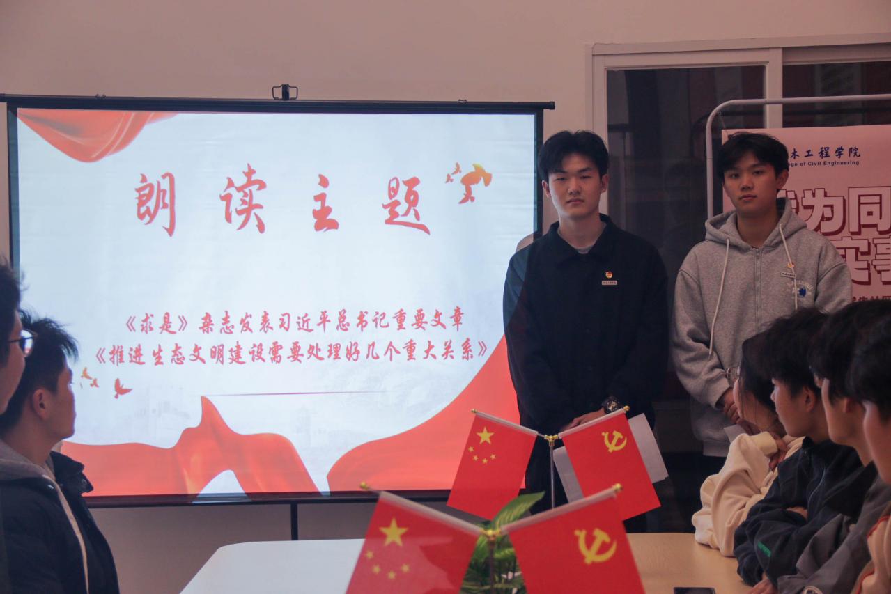 分享會(huì)上,2023級(jí)建設(shè)工程監(jiān)理(3+2)1班班長(zhǎng)朱仕宏、2023級(jí)建設(shè)工程監(jiān)理(3+2)1班團(tuán)支部書記高偉涵,通過(guò)朗讀《求是》雜志發(fā)表習(xí)近平總書記重要文章,帶領(lǐng)同學(xué)們學(xué)習(xí)《推進(jìn)生態(tài)文明建設(shè)需要處理好幾個(gè)重大關(guān)系》內(nèi)容原文,學(xué)思想、悟深度,筑牢生態(tài)文明思想。