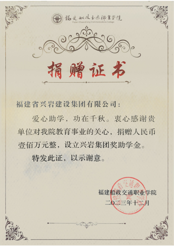 注:興巖集團(tuán)獎(jiǎng)助學(xué)金,是福建省興巖建設(shè)集團(tuán)有限公司于2023年在我校捐資100萬元設(shè)立,旨在獎(jiǎng)勵(lì)和資助我校土木工程學(xué)院德智體美勞全面發(fā)展的優(yōu)秀學(xué)生及品學(xué)兼優(yōu)、家庭經(jīng)濟(jì)困難學(xué)生。