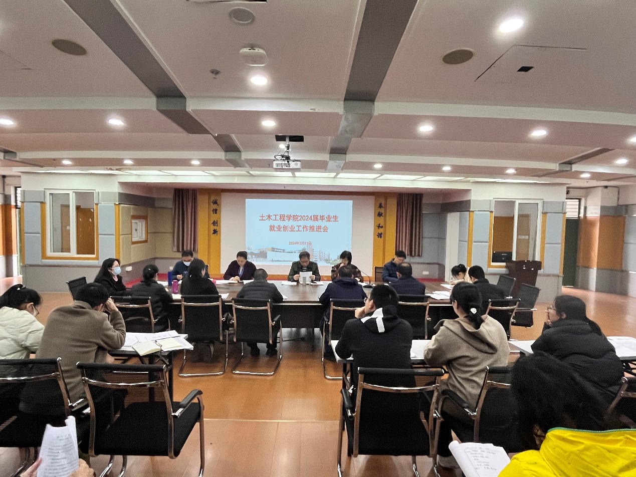 進(jìn)一步做好2024屆畢業(yè)生就業(yè)創(chuàng)業(yè)工作相關(guān)部署,3月13日下午,土木工程學(xué)院在創(chuàng)新樓1007會(huì)議室召開2024屆畢業(yè)生就業(yè)創(chuàng)業(yè)工作推進(jìn)會(huì)。學(xué)院領(lǐng)導(dǎo)班子、各教研室主任及全體輔導(dǎo)員參加了會(huì)議,會(huì)議由黨總支副書記任穎卿主持。