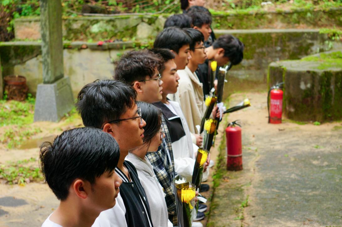 在墓園,同學(xué)們懷揣著對(duì)先輩的崇敬之情,追思先輩創(chuàng)辦船政之艱辛,列隊(duì)肅立、默哀,敬獻(xiàn)鮮花,向我們的“船政之父”表達(dá)敬意、寄托哀思。