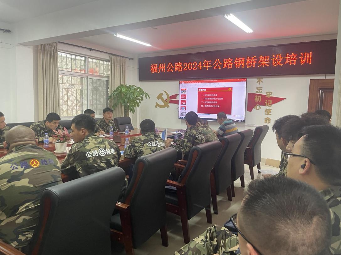 為切實提高公路搶險工作效率,培養(yǎng)鋼橋架設技術骨干,提高突發(fā)事件處置能力,進一步夯實鋼橋架設隊伍服務、應急、應戰(zhàn)一體化建設,本次培訓分為理論學習和技能訓練。理論學習采用集中培訓的方式,系統(tǒng)學習應急人員自護自救常識、安全架設鋼橋要求和基本要領、應急搶險指揮信息設備操作常識等內容;技能訓練采取集中學習、分組練習和綜合演練的組訓方式,組織戰(zhàn)備鋼橋架設的系統(tǒng)訓練和綜合演練。