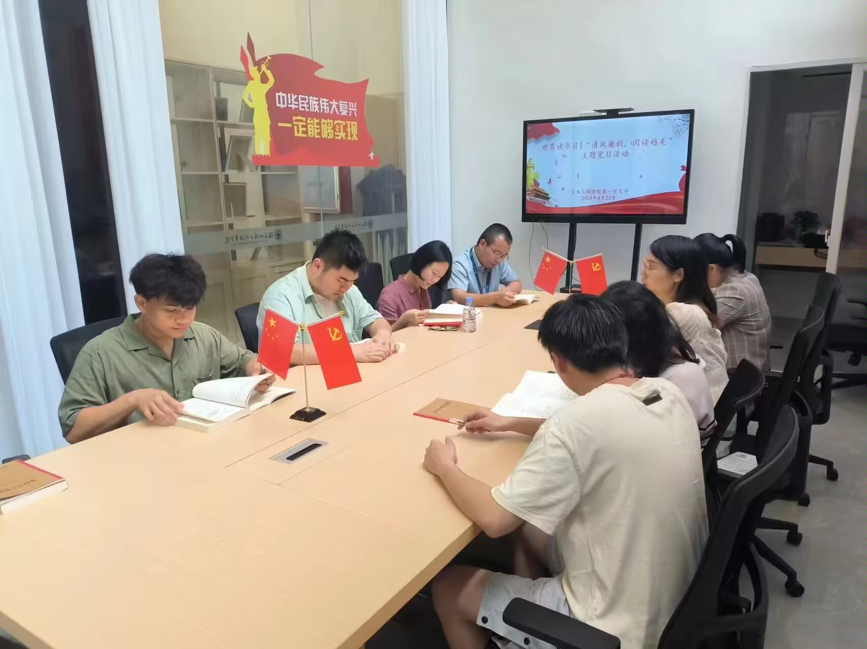 在世界讀書日來臨之際,2024年4月23日,土木工程學(xué)院第一黨支部在“一站式”學(xué)生服務(wù)中心會議室開展了“清風(fēng)廉韻 閱讀悅美”主題黨日活動,通過落實(shí)第一議題學(xué)習(xí)、讀書沙龍等活動,搭建黨員干部交流平臺,磨礪清廉干凈品質(zhì),進(jìn)一步弘揚(yáng)廉潔文化,營造支部風(fēng)清氣正、崇廉尚廉的濃厚氛圍。