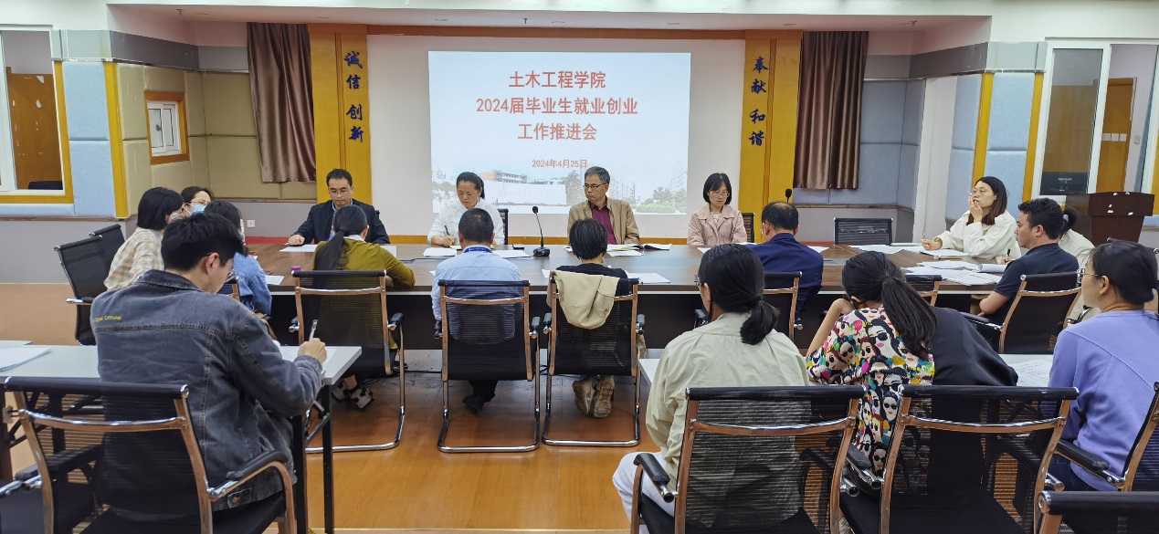 為全力促進高校畢業(yè)生高質量充分就業(yè),進一步做好2024屆畢業(yè)生就業(yè)創(chuàng)業(yè)工作相關部署,4月25日下午,土木工程學院在創(chuàng)新樓1007會議室召開2024屆畢業(yè)生就業(yè)創(chuàng)業(yè)工作推進會。學院領導班子、各教研室主任及畢業(yè)班輔導員參加了會議,會議由黨總支副書記任穎卿主持。