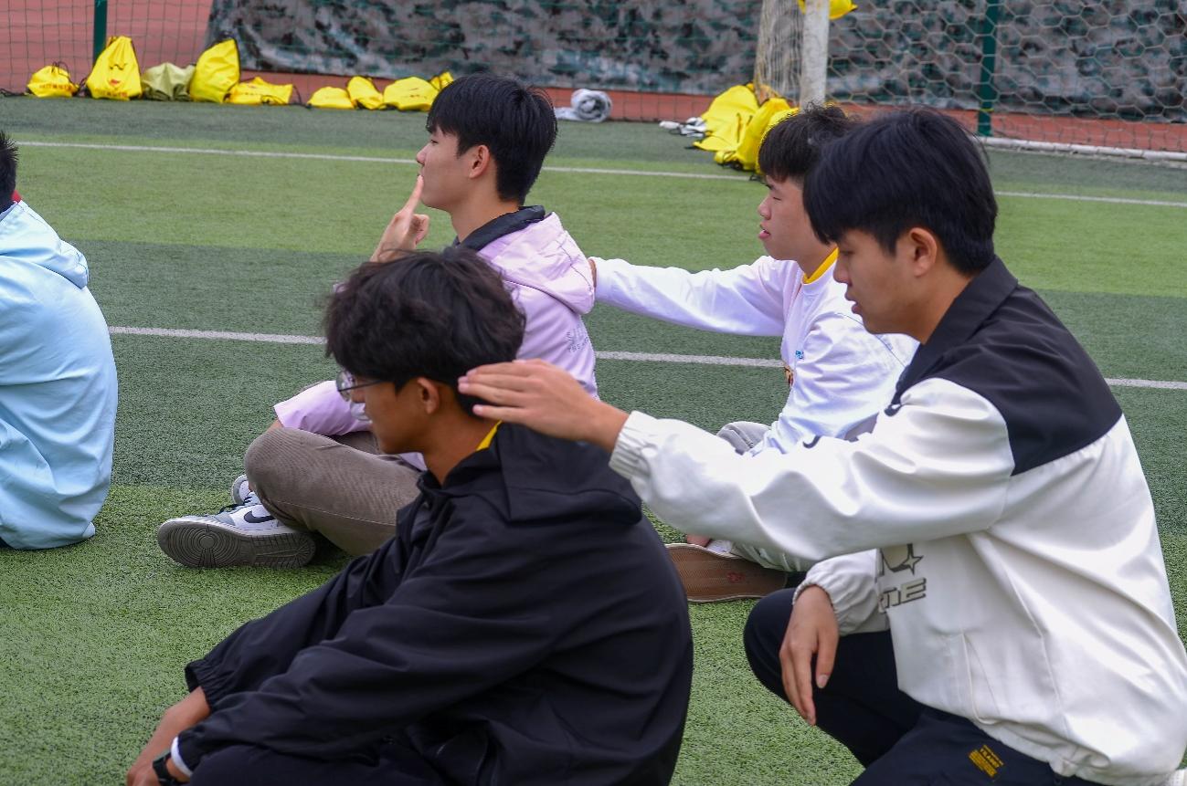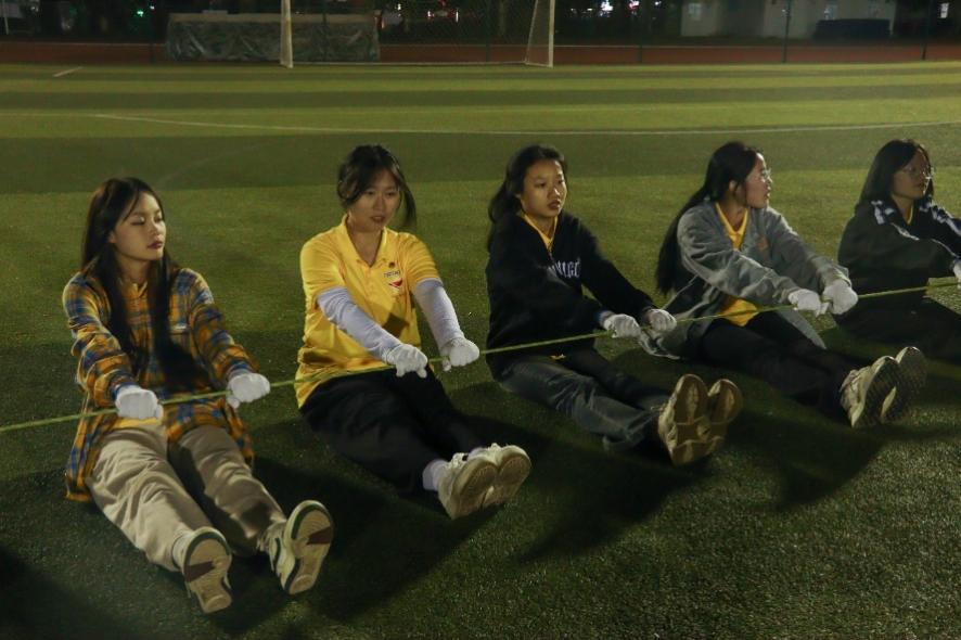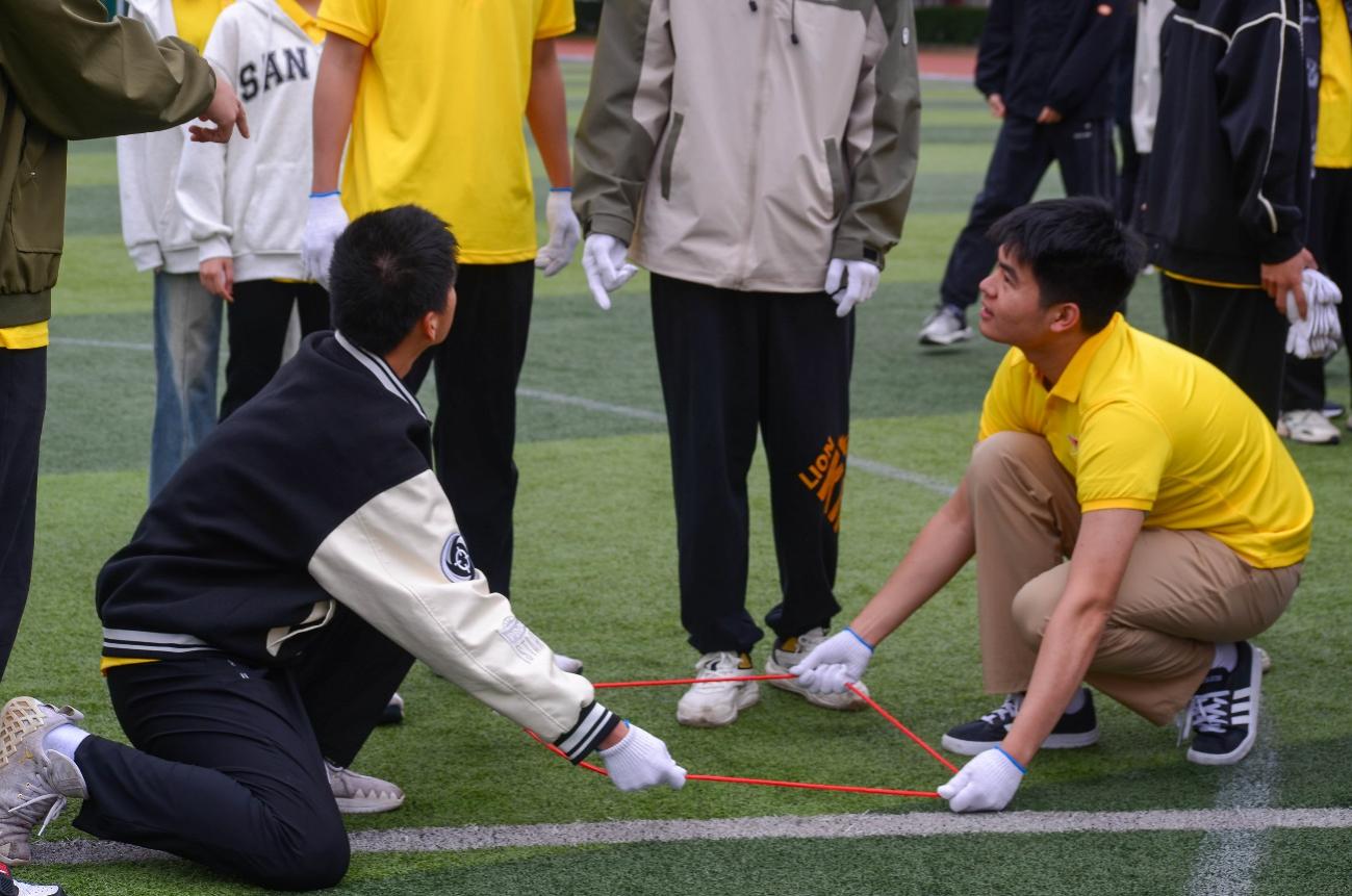 青馬學(xué)員們齊心協(xié)力,讓一名青馬隊(duì)員踩上繩圈行走,努力將繩圈拉直保護(hù)隊(duì)員的安全,大家眾志成城感受到了團(tuán)隊(duì)的力量。