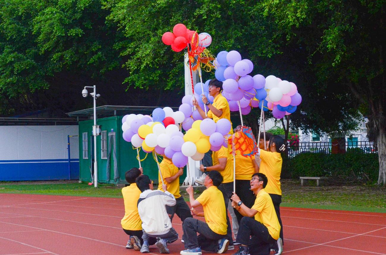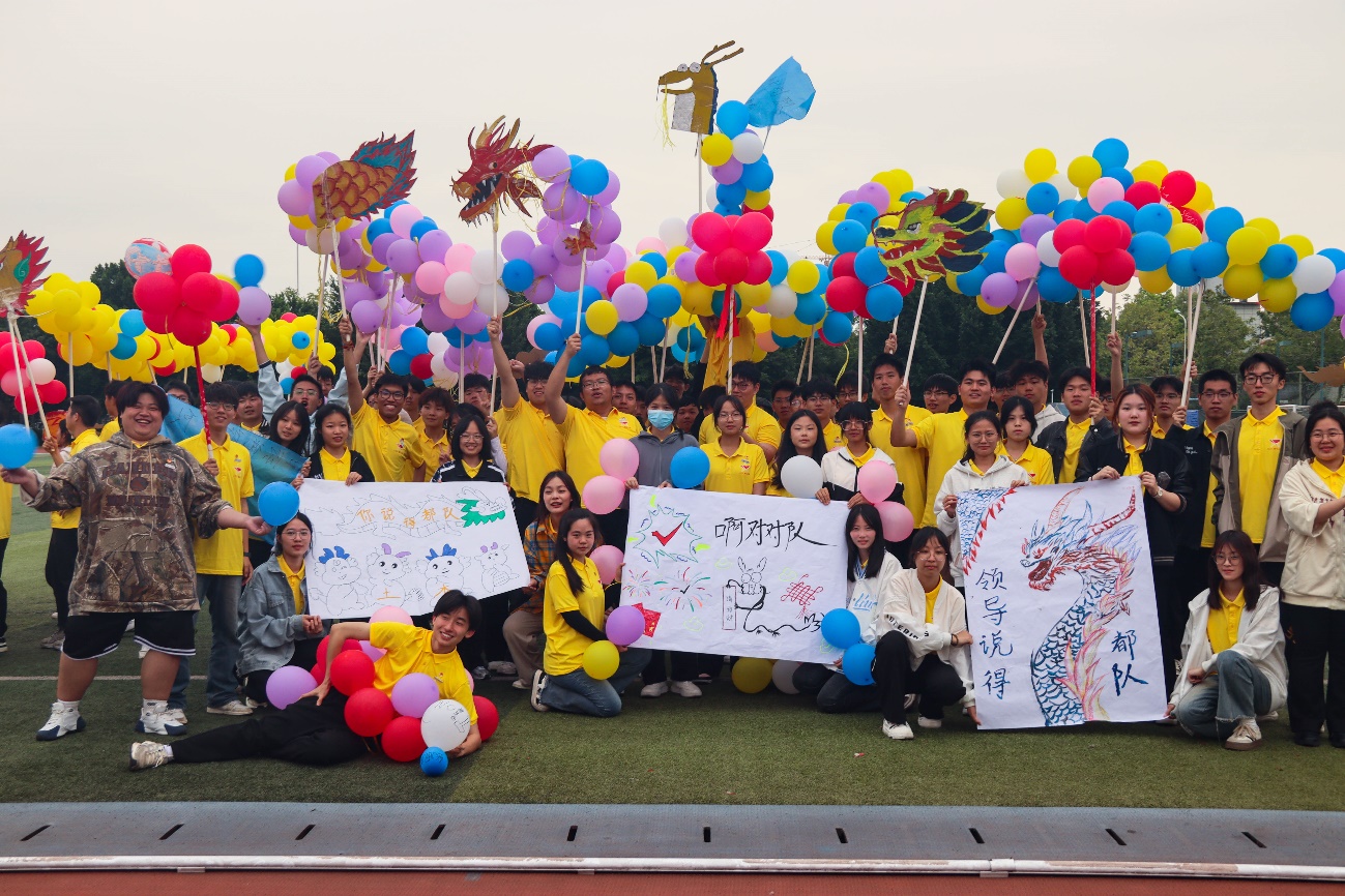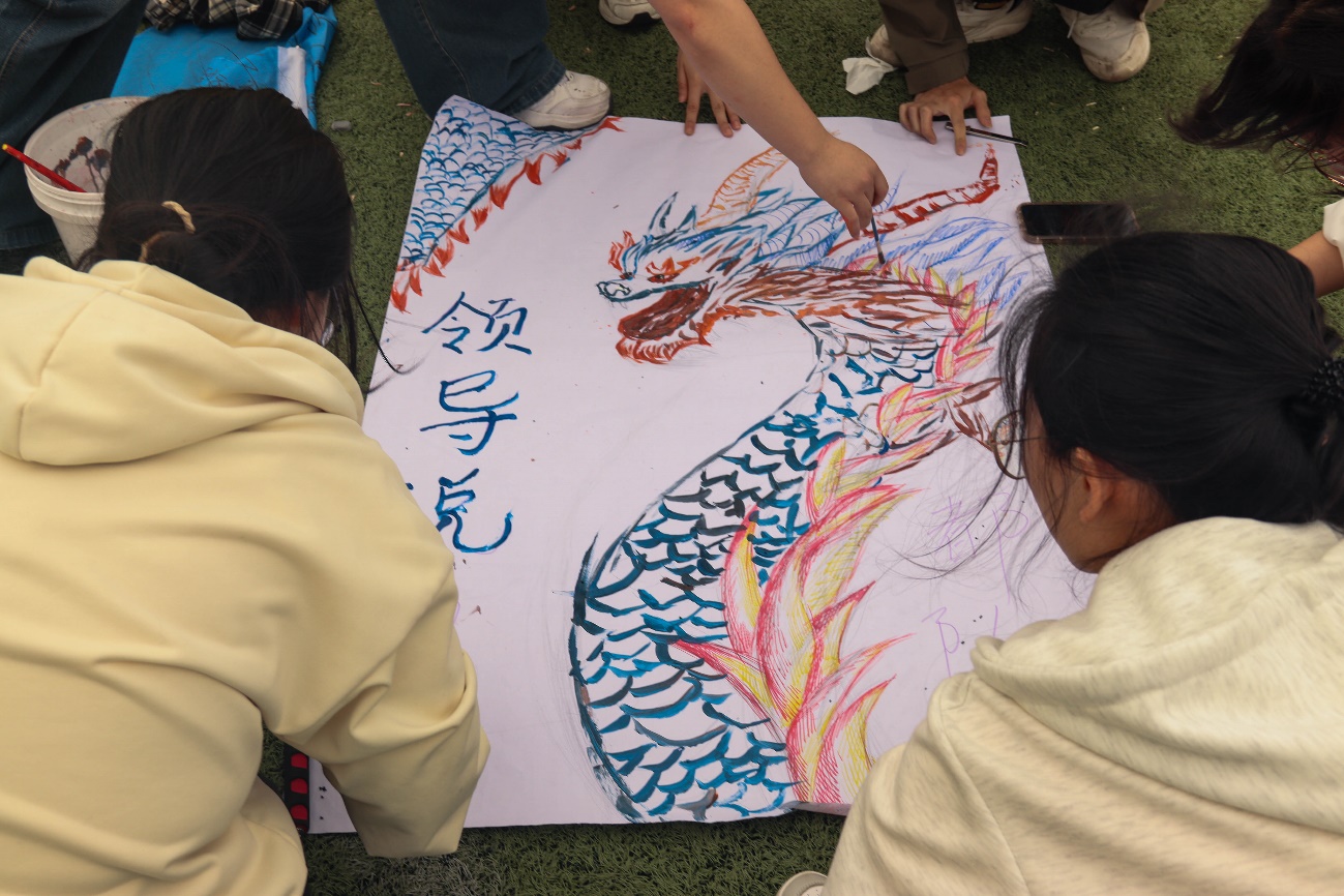 在午休過(guò)后,各教官帶領(lǐng)同學(xué)進(jìn)行“龍騰四?!被顒?dòng),土木小青馬們利用氣球、紙板、棍子、彩色筆等工具組合成一條龍,土木學(xué)子們各顯神通,發(fā)揮自己所長(zhǎng),為巨龍?zhí)泶u加瓦。
