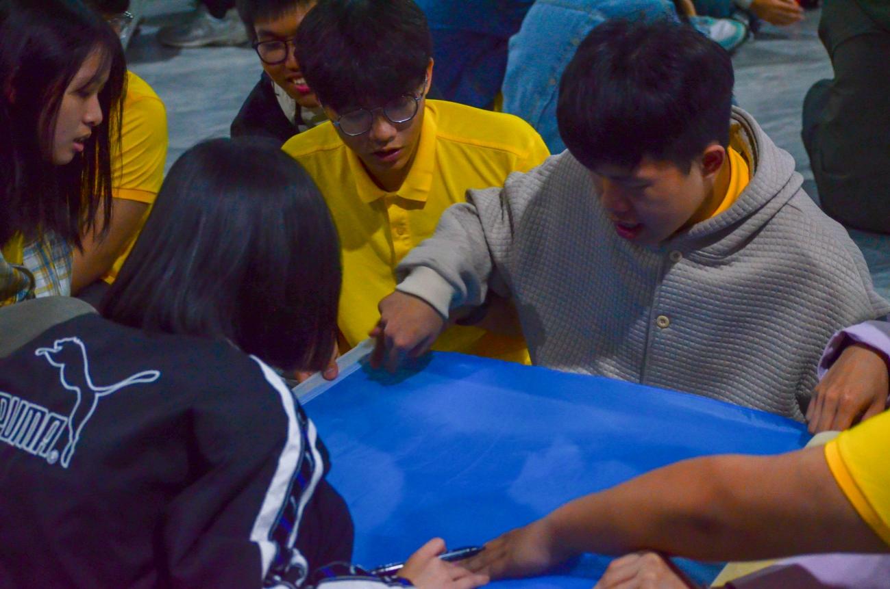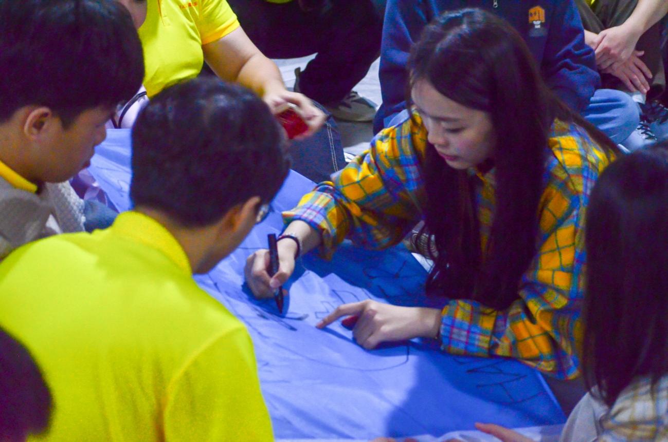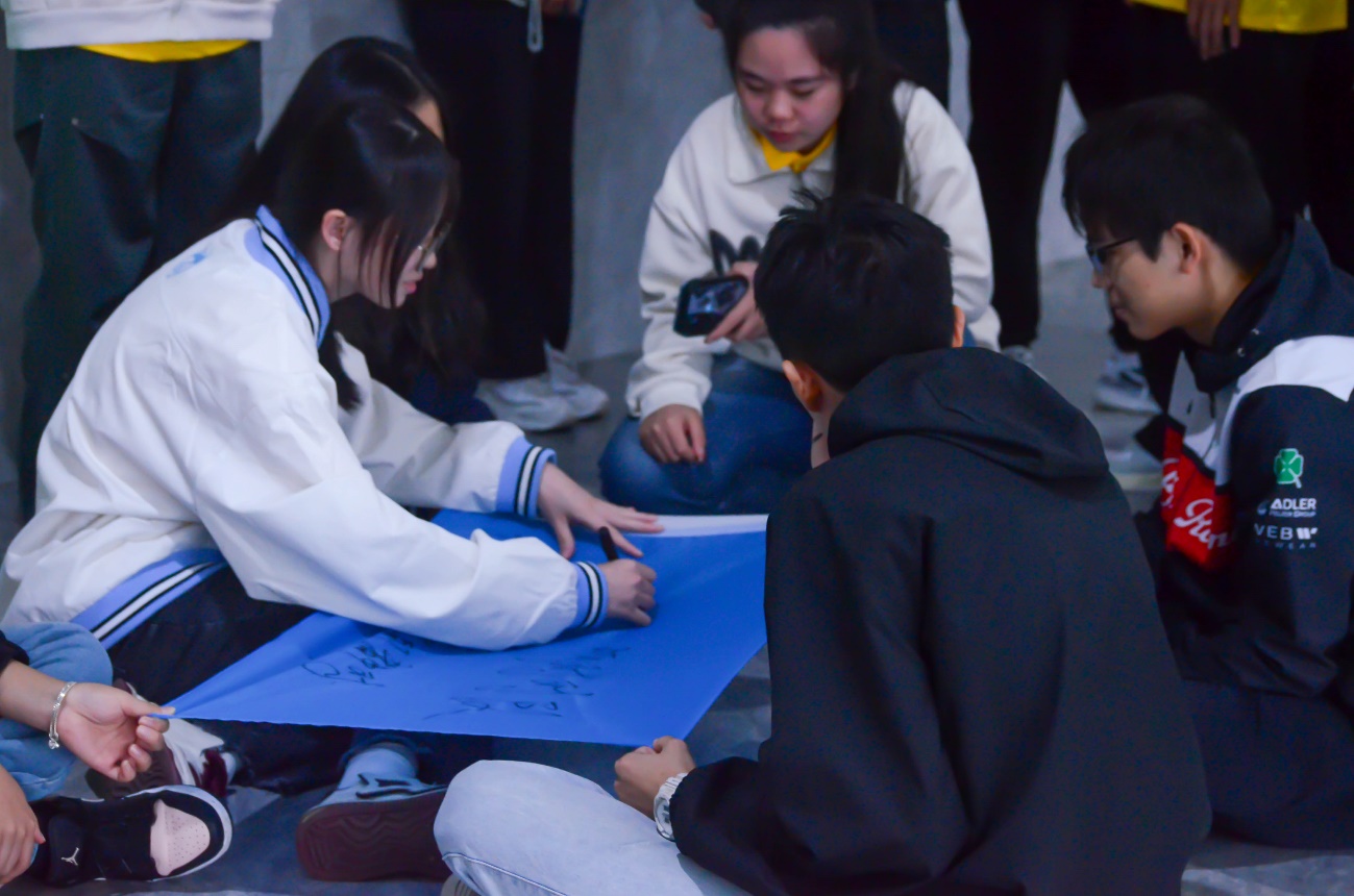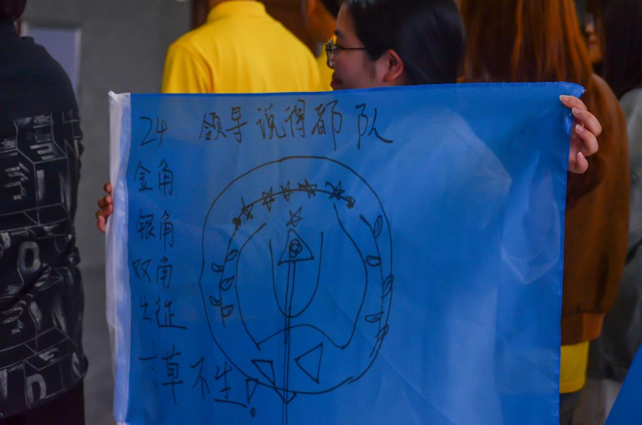 每個(gè)隊(duì)伍都用筆在旗上