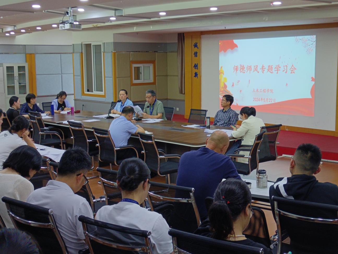 為進(jìn)一步加強(qiáng)師德師風(fēng)建設(shè),全面貫徹習(xí)近平總書(shū)記關(guān)于教育的重要論述和全國(guó)教育大會(huì)精神,提升廣大教職工的思想政治素養(yǎng)和師德師風(fēng)水平,5月22日下午,土木工程學(xué)院在創(chuàng)新樓1007召開(kāi)師德師風(fēng)學(xué)習(xí)會(huì)。土木工程學(xué)院全體教職工參加本次會(huì)議,會(huì)議由黨總支書(shū)記高杰同志主持。