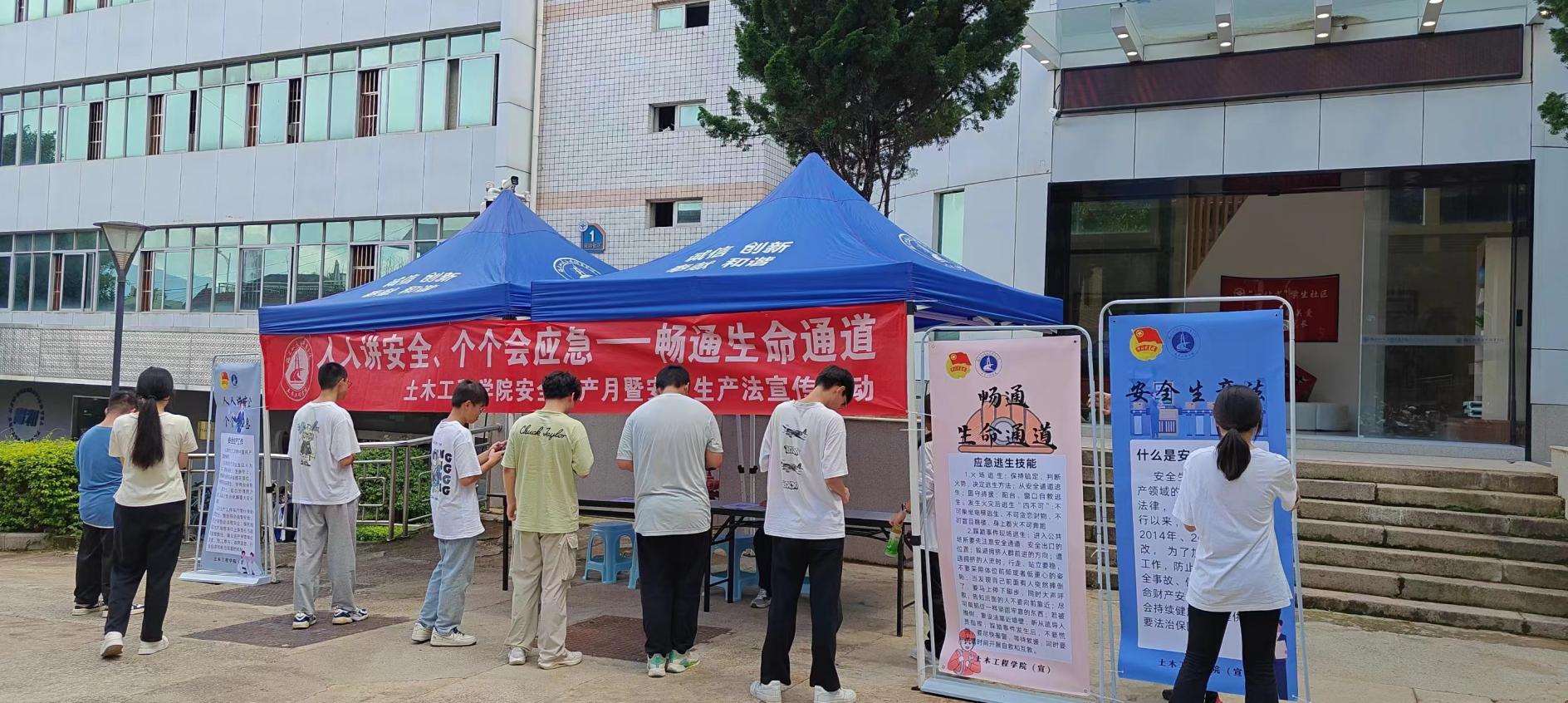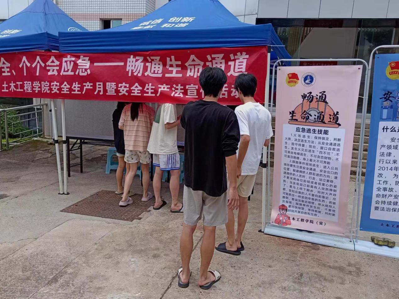 2024年6月是全國第23個“安全生產月”,為強化土木工程學院師生對安全知識技能的掌握,增強安全意識,提高對安全生產法的認識。2024年6月19日,學院于福航園“一站式”學生社區(qū)服務中心開展“人人講安全、個個會應急——暢通生命通道”安全生產月暨安全生產法宣傳活動。