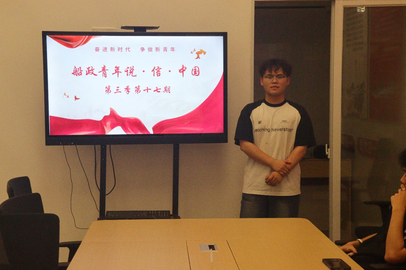 為深入學(xué)習(xí)宣傳貫徹習(xí)近平新時代中國特色社會主義思想和黨的二十大精神,推動黨史學(xué)習(xí)教育常態(tài)化長效化,鞏固拓展學(xué)習(xí)貫徹習(xí)近平新時代中國特色社會主義思想主題教育成果,深入實施“深學(xué)爭優(yōu)、敢為爭先、實干爭效”行動,引導(dǎo)青年學(xué)生厚植家國情懷,增強當(dāng)代青年學(xué)生的“信仰”、“信念”、“信心”、“自信”、“信服”,2024年6月20日晚上,《船政青年說·信·中國》第三季第十七期線下分享會在“一站式”學(xué)生社區(qū)服務(wù)大廳思政引領(lǐng)室舉行。