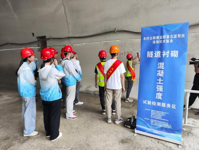 在農(nóng)村公路現(xiàn)場檢測及聯(lián)動(dòng)教學(xué)技術(shù)服務(wù)現(xiàn)場,學(xué)院師生和福建省交通建設(shè)質(zhì)量安全中心、永正工程質(zhì)量檢測有限公司對(duì)項(xiàng)目開展現(xiàn)場檢測,覆蓋路基工程、邊坡工程、隧道工程三大類近十項(xiàng)檢測項(xiàng)目,向項(xiàng)目一線技術(shù)人員發(fā)放“試驗(yàn)檢測聯(lián)動(dòng)教學(xué)視頻光盤”。