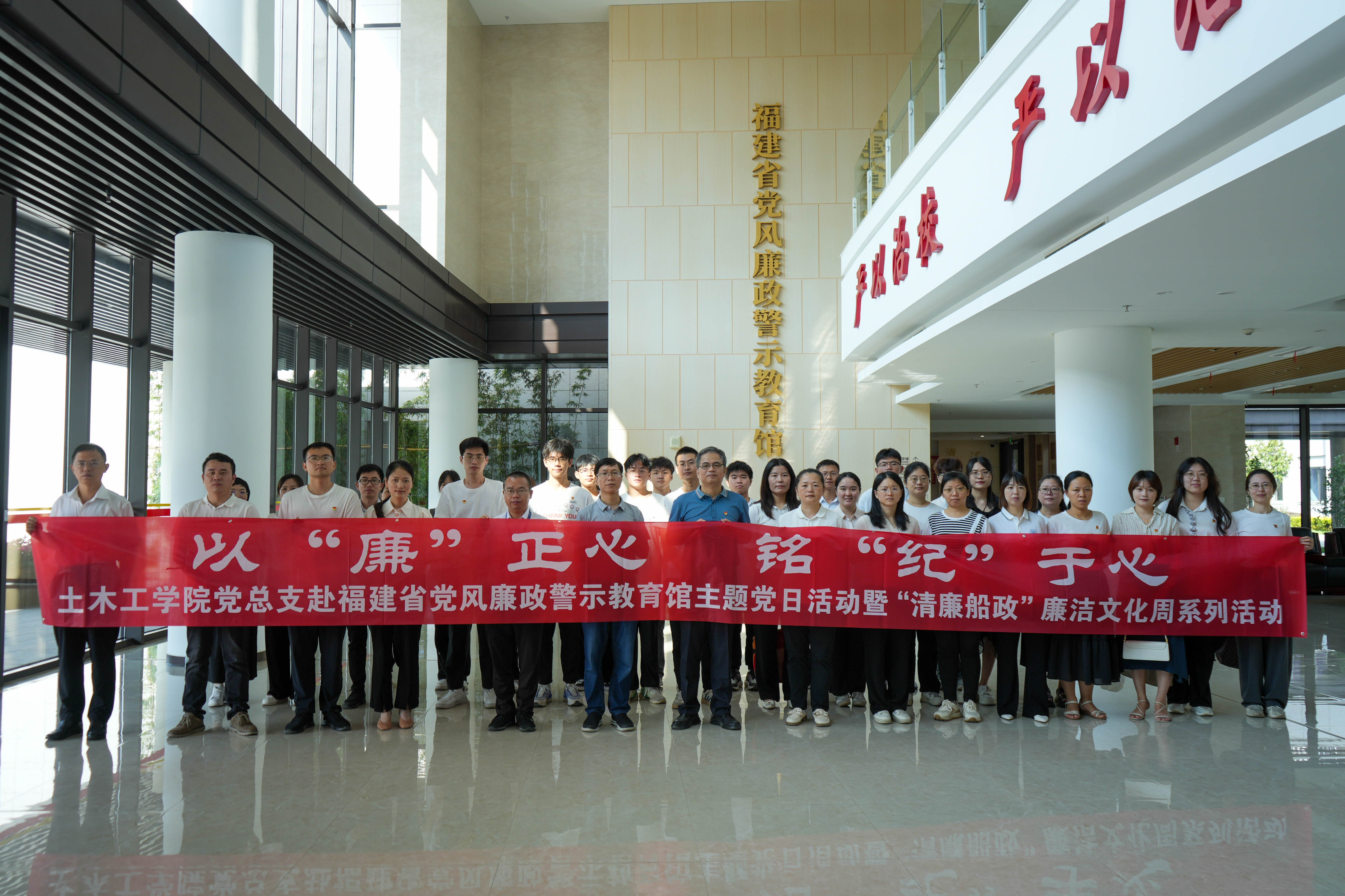 為深入學(xué)習(xí)貫徹黨的二十屆三中全會精神,強化全院黨員干部的廉潔自律意識,筑牢拒腐防變的思想防線,10月16日上午,土木工程學(xué)院組織黨總支成員、副科以上干部、各支部書記、副書記、委員等前往福建省黨風(fēng)廉政警示教育館開展主題黨日活動暨“清廉船政”廉潔文化周系列活動。本次活動由土木工程學(xué)院黨總支書記高杰同志帶隊,近40名黨員、干部參與。