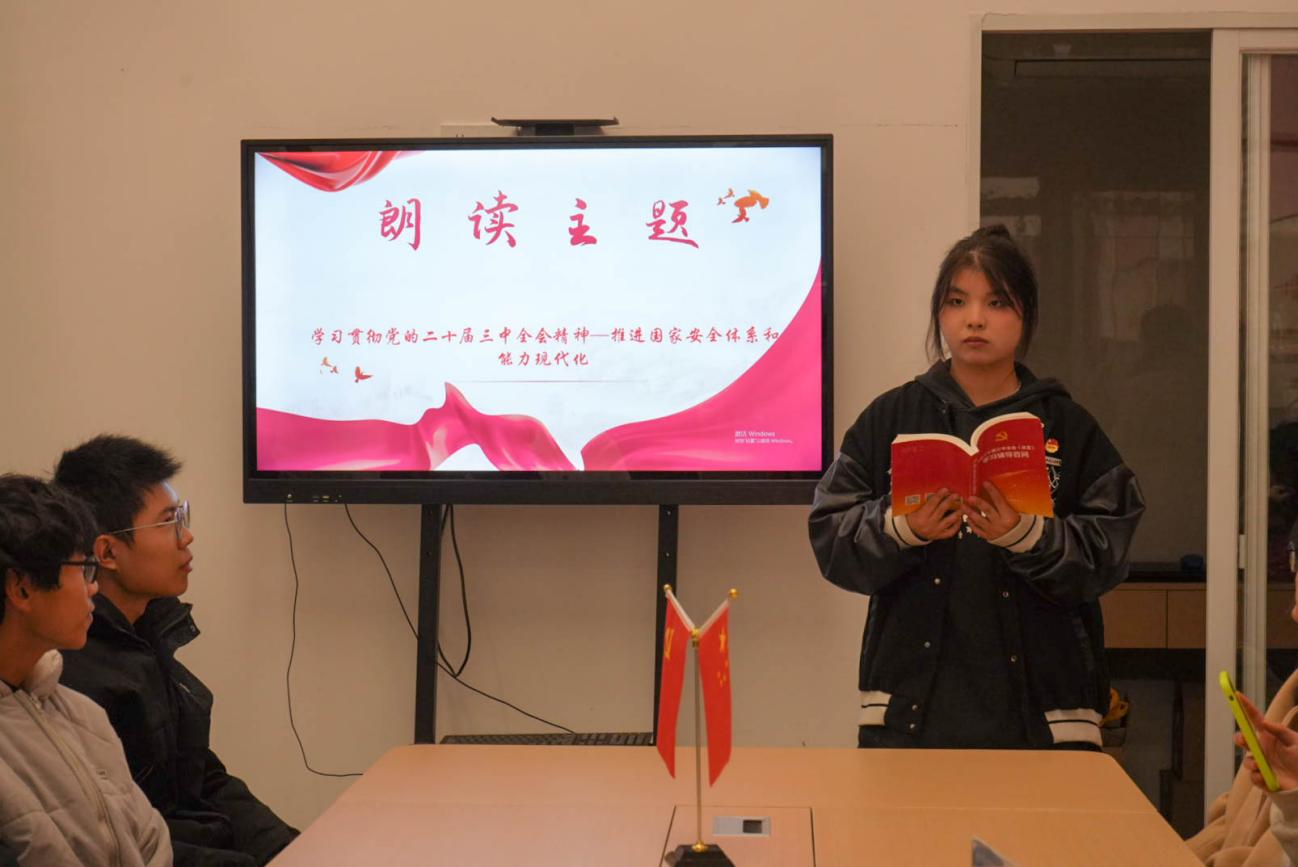 分享會上,2024級建筑裝飾工程技術2班團支部副書記林馨,領學朗讀了《中共中央關于進一步全面深化改革、推進中國式現代化的決定》(后文簡稱《決定》)“推進國家安全體系和能力現代化”部分。