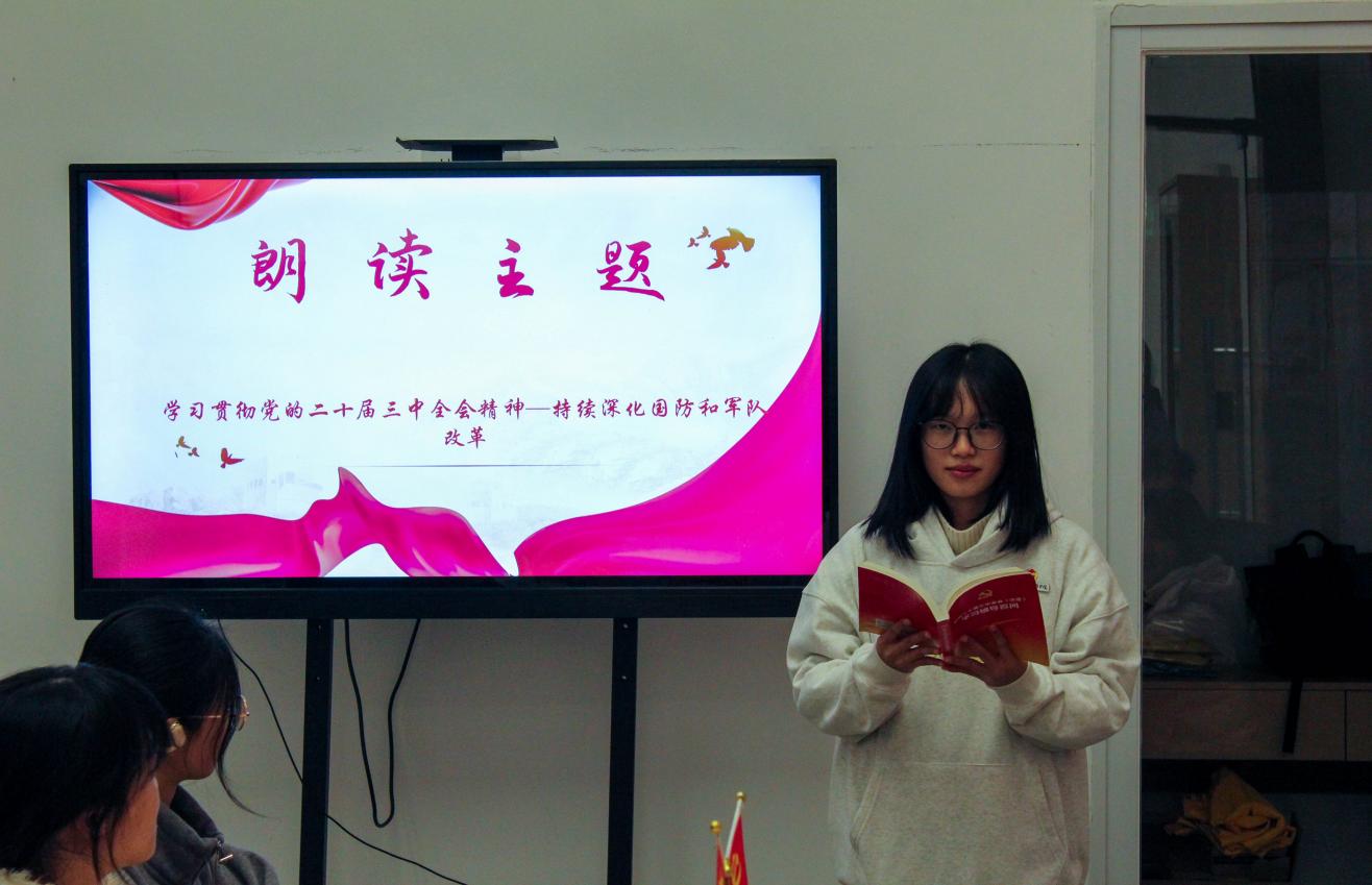 分享會(huì)上,2024級(jí)市政工程技術(shù)1班團(tuán)支書張鈺楓,領(lǐng)學(xué)朗讀了《中共中央關(guān)于進(jìn)一步全面深化改革、推進(jìn)中國式現(xiàn)代化的決定》(后文簡(jiǎn)稱《決定》)“持續(xù)深化國防和軍隊(duì)改革”部分。