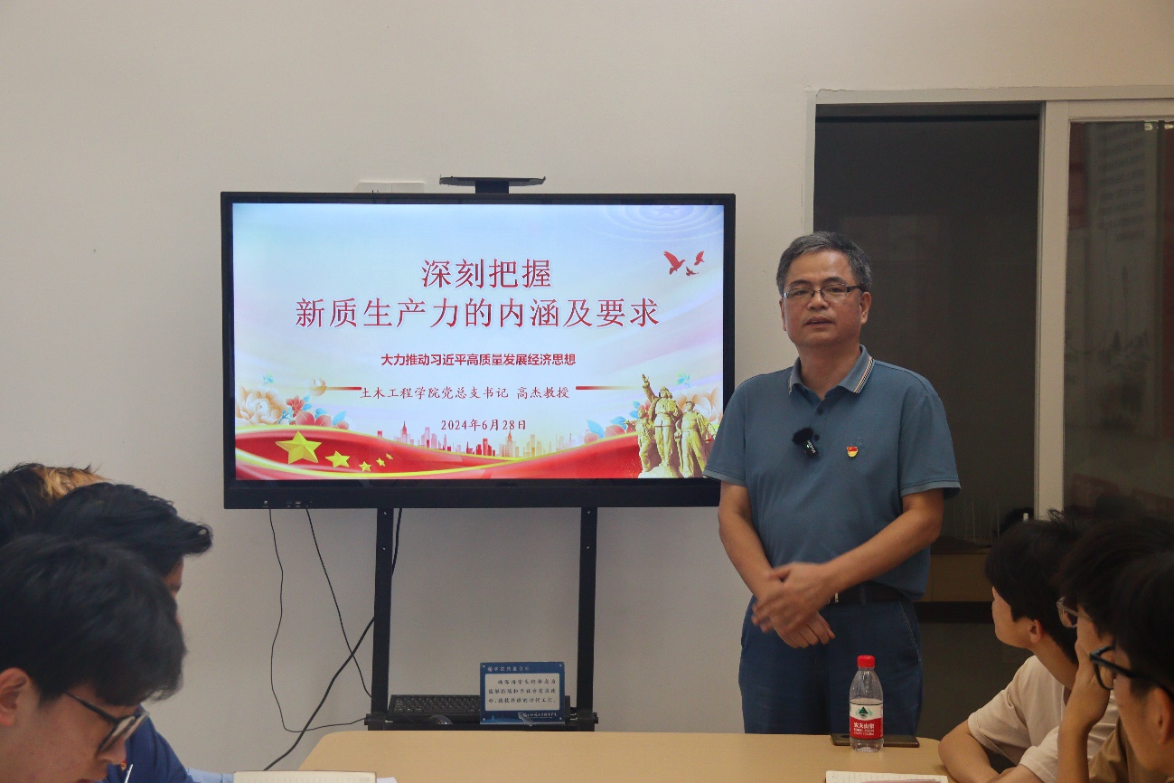 為大力推動(dòng)習(xí)近平總書記在中共中央政治局第十一次集體學(xué)習(xí)時(shí)強(qiáng)調(diào),加快發(fā)展新質(zhì)生產(chǎn)力,扎實(shí)推進(jìn)高質(zhì)量發(fā)展,進(jìn)一步幫助船政學(xué)子深刻認(rèn)識(shí)新質(zhì)生產(chǎn)力,為新質(zhì)生產(chǎn)力蓄勢(shì)賦能,2024年6月28日下午,土木工程學(xué)院黨總支書記高杰教授在福航園“一站式”學(xué)生社區(qū)服務(wù)中心思政引領(lǐng)室以“深刻把握新質(zhì)生產(chǎn)力的內(nèi)涵及要求”為題給青年學(xué)生上專題思政課。