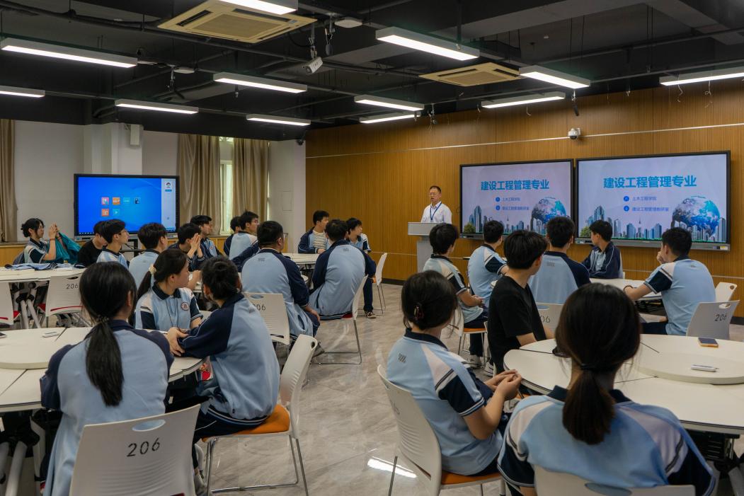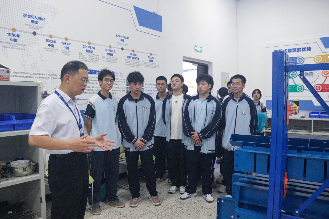 隨后,來訪師生分組參觀了常規(guī)/精密工程測量實訓基地、建設(shè)工程虛實結(jié)合實景教學實訓基地、智慧檢測基地及裝配式實訓基地等特色實訓場所。實訓指導老師通過現(xiàn)場演示和生動講解,向?qū)W生們展示了先進的實訓設(shè)備和實驗儀器。學生們通過沉浸式體驗,對土木工程領(lǐng)域的專業(yè)技能產(chǎn)生了濃厚興趣,對未來職業(yè)發(fā)展充滿憧憬。