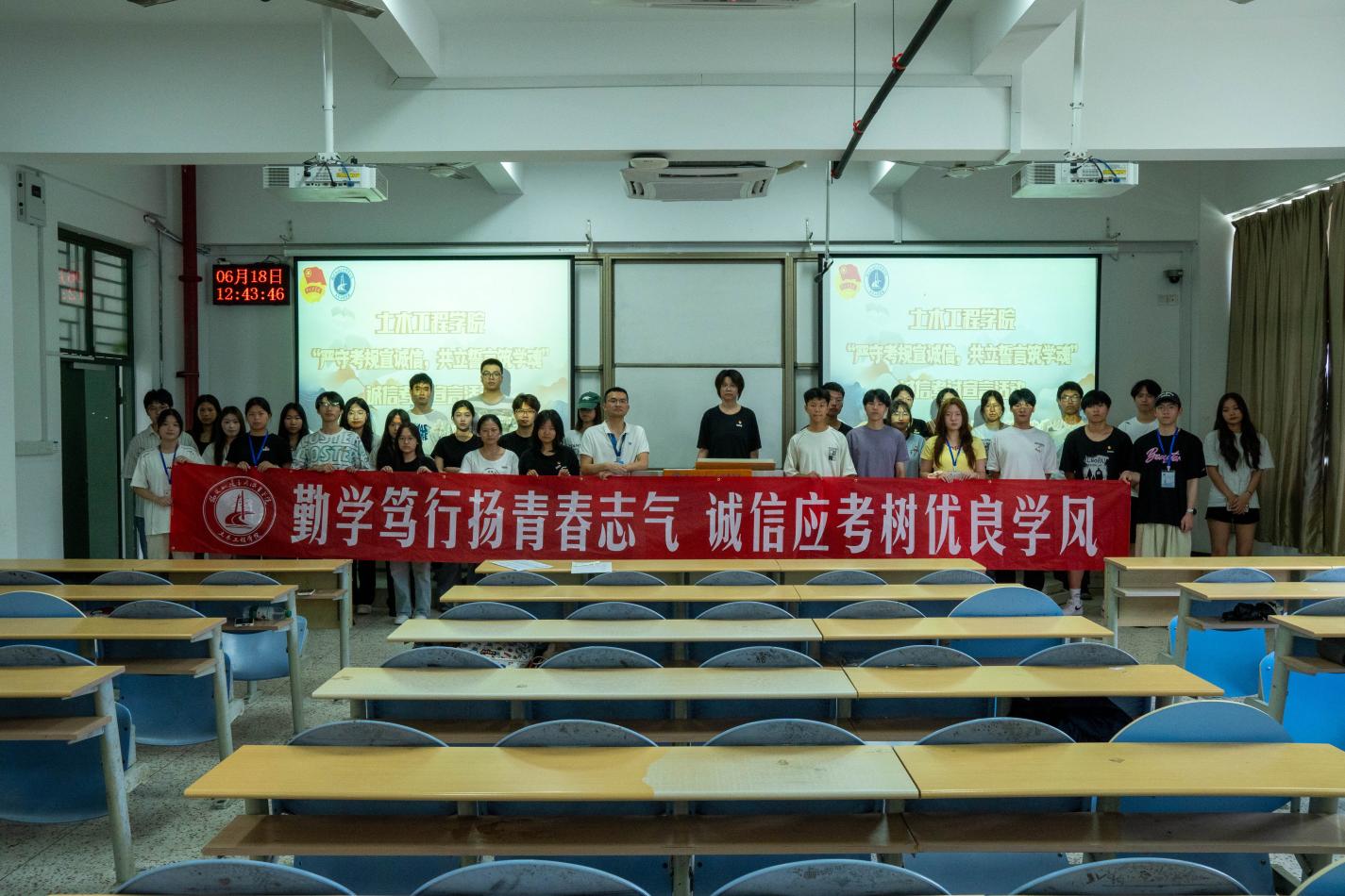 為厚植誠信文化,培育同學們誠信意識,激發(fā)踐行誠信行為的積極主動性,營造誠信和諧的校園環(huán)境。2025年6月18日,土木工程學院于福船園創(chuàng)新樓302教室舉辦“嚴守考規(guī)宣誠信,共立誓言筑學魂”誠信考試宣誓活動。2023級、2024級學生代表參與本次活動。