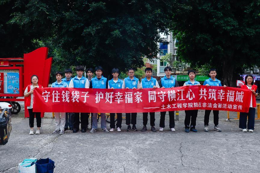 為提高社區(qū)居民的防范金融風(fēng)險(xiǎn)意識(shí),營(yíng)造良好的金融環(huán)境,助力幸福家園建設(shè)。2025年6月18日,土木工程學(xué)院前往倉(cāng)山區(qū)金山街道橫江渡社區(qū)開(kāi)展以“守住錢(qián)袋子 護(hù)好幸福家 同守橫江心 共筑幸福城”為主題的金融安全宣傳活動(dòng)。