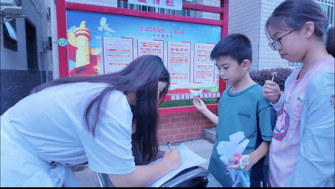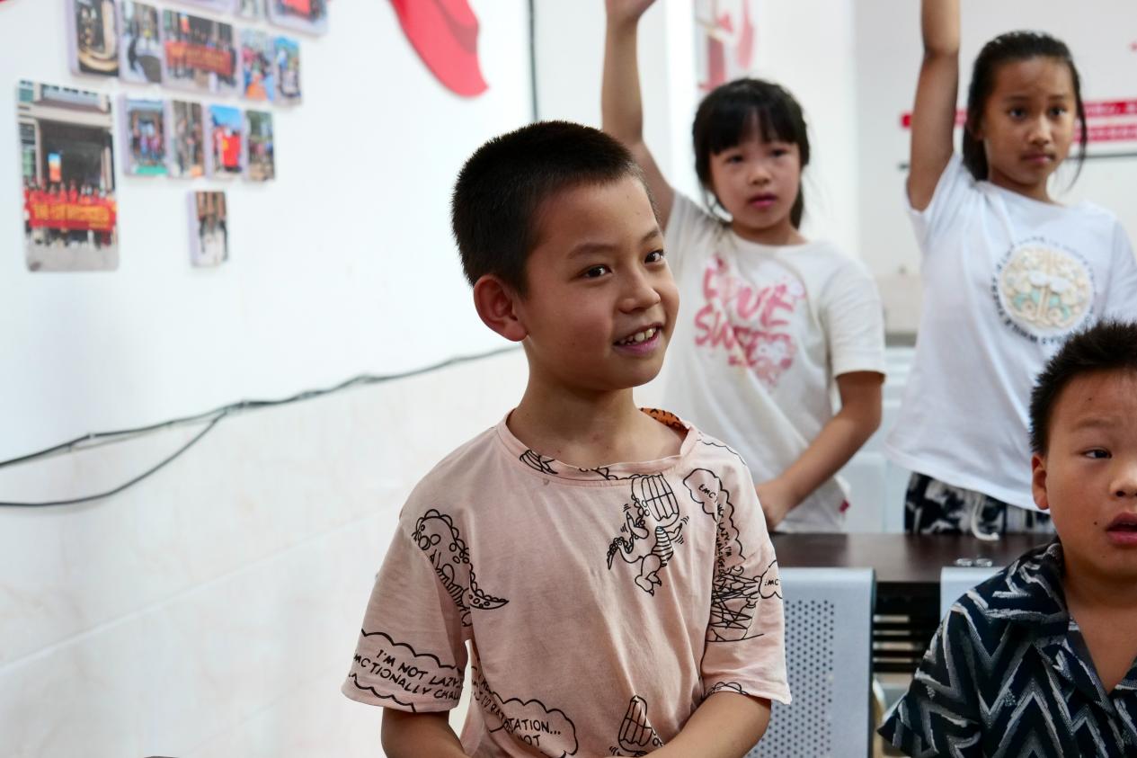圖為實(shí)踐團(tuán)在三溪鄉(xiāng)溪源村對小朋友進(jìn)行調(diào)查問卷