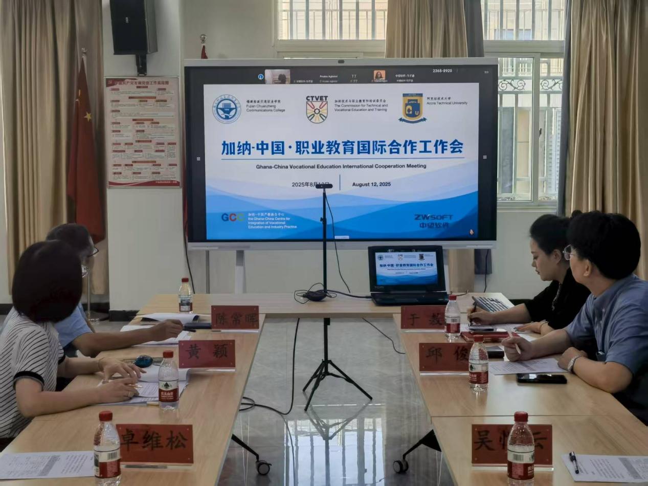 8月12日,福建船政交通職業(yè)學(xué)院與加納阿克拉技術(shù)大學(xué)召開“職教出海”首次合作工作會議。會議由加納教育部技能課程開發(fā)與評估中心主任Peter Boahin主持,雙方院校領(lǐng)導(dǎo)及相關(guān)機構(gòu)代表參會。