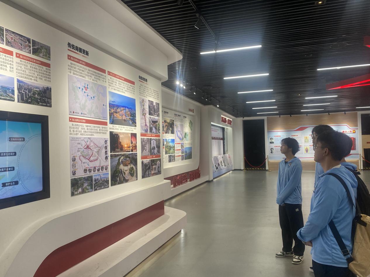 通過館內(nèi)未來影院和各類VR互動體驗項目,實踐團對福州城市規(guī)劃的科學性和前瞻性有了更直觀的認識,對“數(shù)字中國”“生態(tài)文明”等國家戰(zhàn)略在地方落地生根有了更深刻的理解。隊員們在與自己專業(yè)相關(guān)的展區(qū)前駐足良久,課堂所學的理論知識在此刻化為生動的實踐體驗。那些曾經(jīng)停留在課本上的城市規(guī)劃理念、交通網(wǎng)絡布局原則,在這里得到了具體地展現(xiàn)和應用。不僅加深了隊員對專業(yè)知識的理解,更激發(fā)了他們投身祖國建設的熱情和信心。