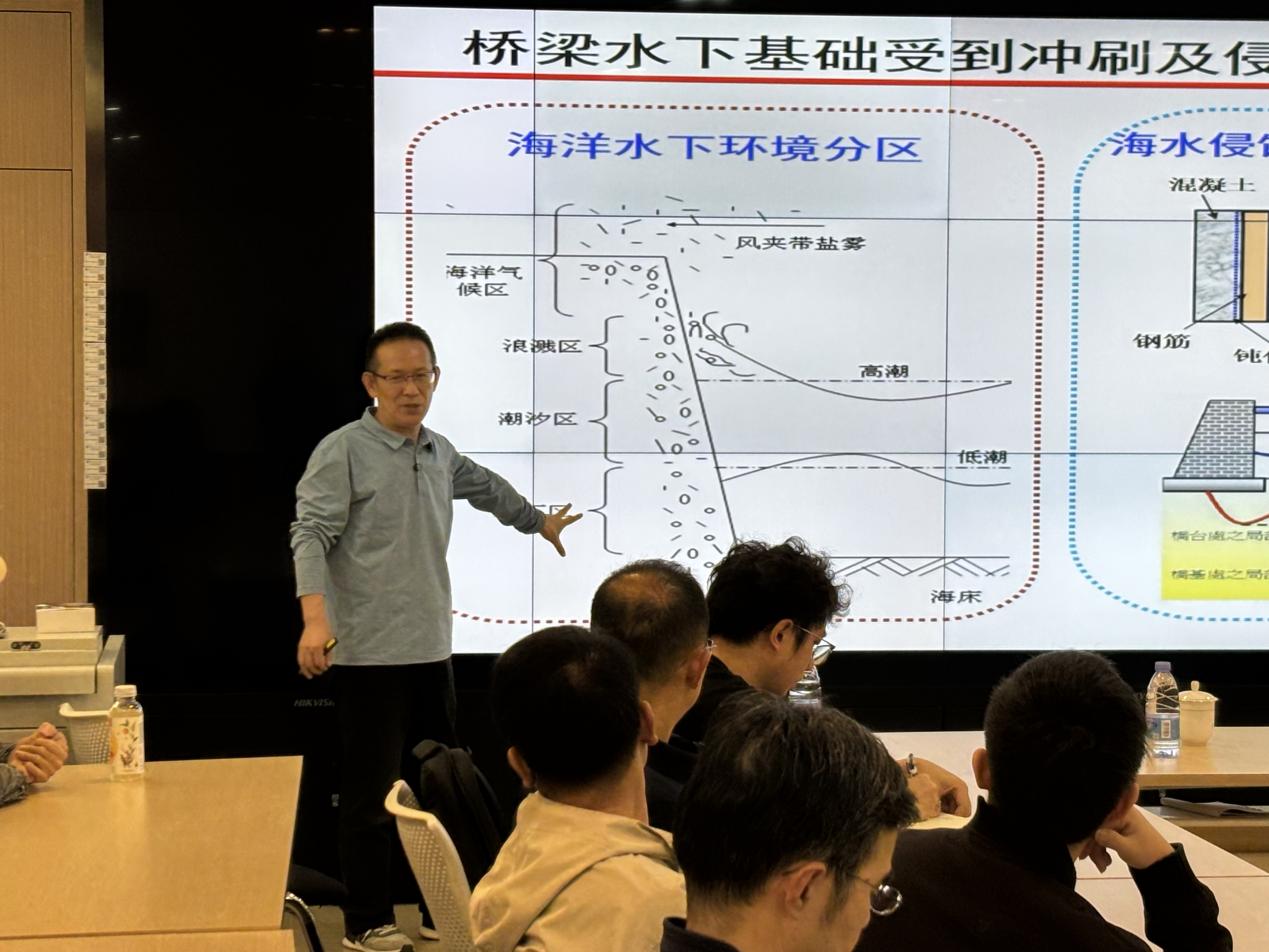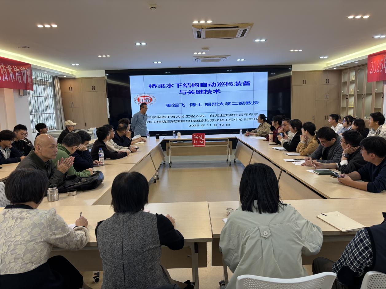 橋梁作為交通基礎(chǔ)設(shè)施的“生命線”,其水下結(jié)構(gòu)的安全性與耐久性至關(guān)重要,直接關(guān)系到公共安全與經(jīng)濟(jì)發(fā)展。2025年11月12日,土木工程學(xué)院特邀福州大學(xué)的姜紹飛教授,于福船園創(chuàng)新樓701舉辦題為“橋梁水下結(jié)構(gòu)病害檢測(cè)裝備與關(guān)鍵技術(shù)”的學(xué)術(shù)講座。本次講座吸引了學(xué)院相關(guān)教研室的專任教師及學(xué)生踴躍參加,現(xiàn)場(chǎng)學(xué)術(shù)交流氣氛熱烈。
