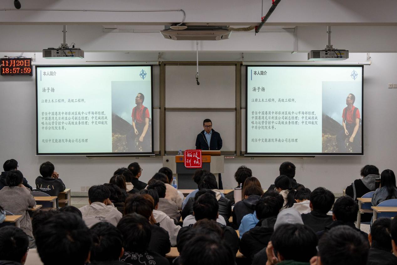 在經濟全球化深入推進、中國企業(yè)“走出去”步伐加快的背景下,為幫助同學們了解國際市場的規(guī)則、文化與競爭環(huán)境,最終實現(xiàn)可持續(xù)的跨國發(fā)展。2025年11月20日,土木工程學院在福船園創(chuàng)新樓301開展“踐行企業(yè)責任——中國企業(yè)國際化的機遇與挑戰(zhàn)”主題講座。本次講座特邀中交能源院華南公司總經理、注冊土木工程師湯子揚高級工程師主講,近百名學子齊聚現(xiàn)場,共同探尋中國工程企業(yè)“走出去”的奮斗之路與發(fā)展之道。