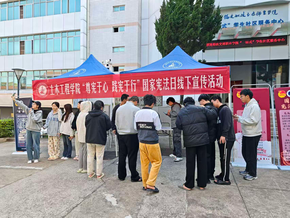 此次“尊憲于心 踐憲于行”國家憲法日線下宣傳活動的圓滿舉行,讓憲法精神如蒲公英的種子般,在校園的每一寸土地上生根發(fā)芽。未來,學院將繼續(xù)普及法律知識,為青少年的健康成長筑牢法治根基,引導土木學子成為憲法的忠實崇尚者、自覺遵守者和堅定捍衛(wèi)者。
