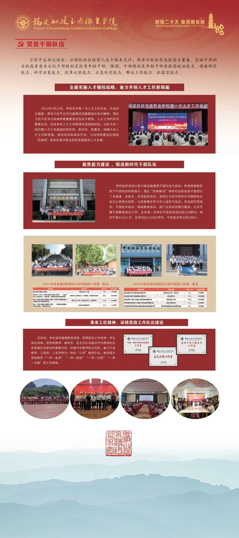 十九大以來,福建船政交通職業(yè)學院堅持以習近平新時代中國特色社會主義思想為指導,堅持社會主義辦學方向,深入貫徹黨的十九大和十九屆歷次全會精神,堅守“為黨育人、為國育才”的初心和使命,慎終如始推進學校黨的政治建設、思想建設、組織建設、作風建設、紀律建設、制度建設,黨的組織體系和學校治理體系相得益彰,黨建引領推動創(chuàng)新船政、質(zhì)量船政、文化船政協(xié)奏齊鳴,政治生態(tài)、學術(shù)生態(tài)、文化生態(tài)持續(xù)向好,辦學效率、辦學效能、辦學效益顯著提升!