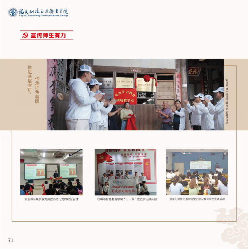 十九大以來,福建船政交通職業(yè)學院堅持以習近平新時代中國特色社會主義思想為指導,堅持社會主義辦學方向,深入貫徹黨的十九大和十九屆歷次全會精神,堅守“為黨育人、為國育才”的初心和使命,慎終如始推進學校黨的政治建設、思想建設、組織建設、作風建設、紀律建設、制度建設,黨的組織體系和學校治理體系相得益彰,黨建引領推動創(chuàng)新船政、質(zhì)量船政、文化船政協(xié)奏齊鳴,政治生態(tài)、學術(shù)生態(tài)、文化生態(tài)持續(xù)向好,辦學效率、辦學效能、辦學效益顯著提升!