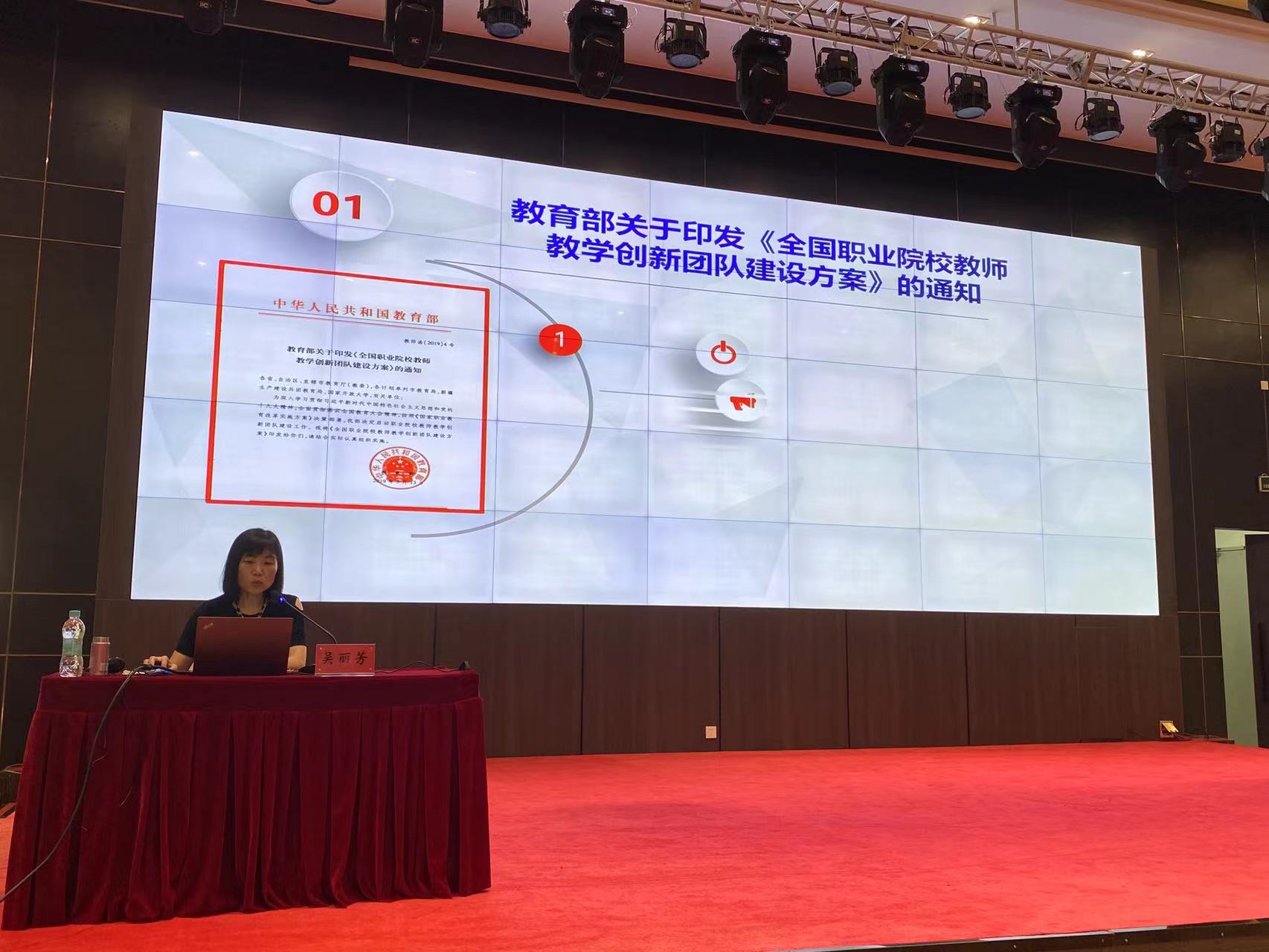 福建幼兒師范高等??茖W(xué)校學(xué)前教育學(xué)院院長(zhǎng),福建省杰出人民教師、福建省優(yōu)秀教師、福建省名師吳麗芳以《多方協(xié)同創(chuàng)新發(fā)展 共建高質(zhì)量職教團(tuán)隊(duì)——國(guó)家級(jí)職業(yè)教育教師教學(xué)創(chuàng)新團(tuán)隊(duì)建設(shè)實(shí)踐》為題,站在學(xué)前教育角度,從成立教師教育學(xué)院,構(gòu)建協(xié)作型發(fā)展共同體;引育并舉雙師匯聚,打造結(jié)構(gòu)化復(fù)合化團(tuán)隊(duì);緊密對(duì)接職業(yè)標(biāo)準(zhǔn),重構(gòu)模塊化的課程體系;德技并修工學(xué)結(jié)合,雙師共推項(xiàng)目教學(xué)改革;以課題研究為抓手,深化校企合作雙元育人;交流合作協(xié)同創(chuàng)新,共享教學(xué)團(tuán)隊(duì)建設(shè)成果六個(gè)方面分享了其職業(yè)教育教師教學(xué)創(chuàng)新團(tuán)隊(duì)的建設(shè)經(jīng)驗(yàn)。
