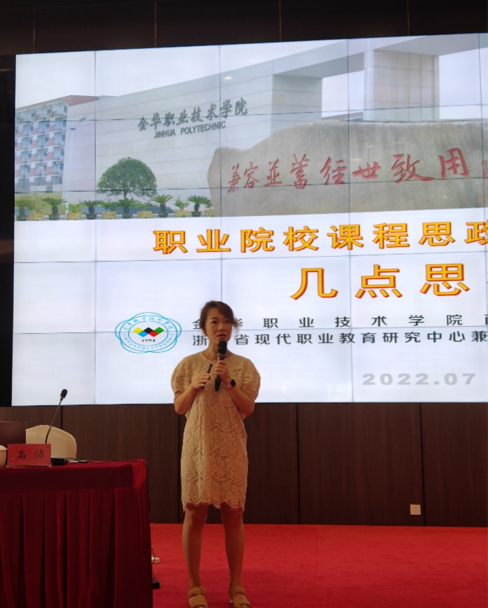 金華職業(yè)技術(shù)學(xué)院商學(xué)院副院長(zhǎng)、金華市新世紀(jì)321人才第二層次人才、金華市宣傳文化系統(tǒng)“五個(gè)一批”人才高潔教授以《職業(yè)院校課程思政教學(xué)設(shè)計(jì)》為題,以豐富詳實(shí)的案例向?qū)W員們剖析了在職業(yè)院校課程思政教學(xué)設(shè)計(jì)中應(yīng)該如何重視課程思政的思政味,守牢課程思政的職業(yè)味,做實(shí)課程思政的特色性。