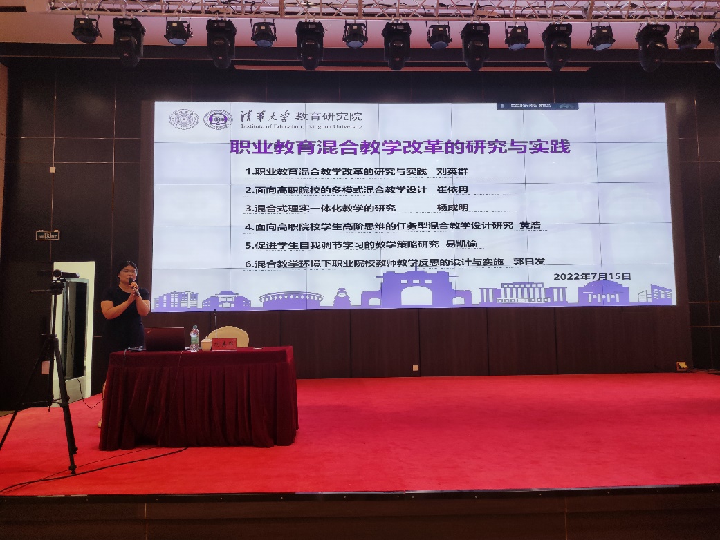 清華大學(xué)計(jì)算機(jī)科學(xué)與技術(shù)博士,清華大學(xué)教育研究院教育技術(shù)研究所高級(jí)工程師劉英群率團(tuán)隊(duì)圍繞《職業(yè)教育混合教學(xué)改革的研究與實(shí)踐》專題,分析在職業(yè)教育數(shù)字化轉(zhuǎn)型背景下,職業(yè)院校混合課程如何開展教學(xué)實(shí)踐和系統(tǒng)化研究。崔依冉、楊成明、黃浩、易凱諭、郭日發(fā)幾位成員分別就《面向高職院校的多模式混合教學(xué)設(shè)計(jì)》《混合式理實(shí)一體化教學(xué)的研究》《面向高職院校學(xué)生高階思維的任務(wù)型混合教學(xué)設(shè)計(jì)研究》《促進(jìn)學(xué)生自我調(diào)節(jié)學(xué)習(xí)的教學(xué)策略研究》《混合教學(xué)環(huán)境下職業(yè)院校教師教學(xué)反思的設(shè)計(jì)與實(shí)施》分享了其團(tuán)隊(duì)的研究成果。