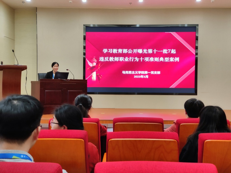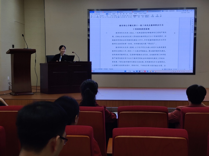 省級樣板支部馬克思主義學(xué)院第一黨支部書記洪凌艷領(lǐng)學(xué)《教育部公開曝光第十一批7起違反教師職業(yè)行為十項準則典型案例》。以生動詳實的案例、通俗易懂的語言,對全院教師加強警示教育,希望大家警鐘長鳴,引以為戒,共同營造“風(fēng)清氣正”的師德師風(fēng)氛圍。