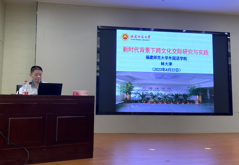 福建師范大學外國語學院前院長、博士生導師、國務院政府特殊津貼專家、福建省優(yōu)秀教師林大津教授作題為“新時代背景下跨文化交際研究與實踐”的專題講座。林大津教授圍繞中西方文化特點及差異,分享他的跨文化研究歷程,詮釋了中外人文交流的真諦,并提出“一帶一路”建設需要語言鋪路、投石問路,要求每一位建設者拓寬國際視野,識別、理解、尊重多元文化,提升用英語傳播中華文化的能力。林大津教授激情澎湃、旁征博引的學者風范贏得老師們的陣陣掌聲。