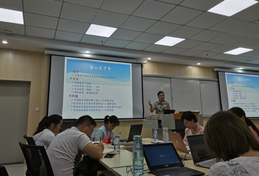 培訓(xùn)過程中,培訓(xùn)專家結(jié)合新時期職業(yè)教育改革的精神及產(chǎn)業(yè)發(fā)展形勢,深入闡述了高水平專業(yè)群核心標準建設(shè)的思路與舉措,思路清晰、內(nèi)容豐富、理論聯(lián)系實際,具有很強的參考價值。同時,通過工作坊的方式,參訓(xùn)教師在專家的指導(dǎo)下完成了專業(yè)核心標準的建設(shè)。