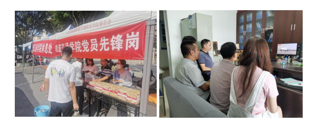 4.設(shè)立一道紅色防火墻。新生報道入學(xué)期間,軌道交通學(xué)院設(shè)立黨員先鋒崗,由院黨總支書記帶領(lǐng)學(xué)院輔導(dǎo)員為學(xué)生發(fā)放材料,解答疑問。
