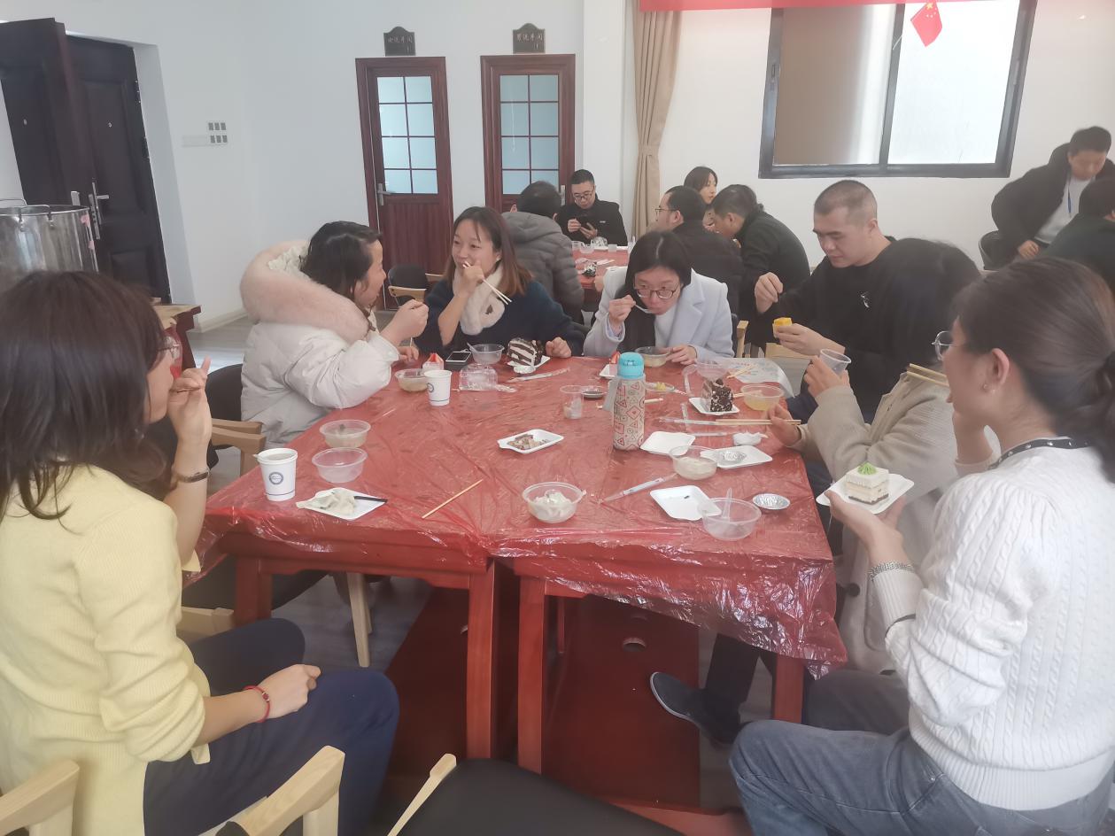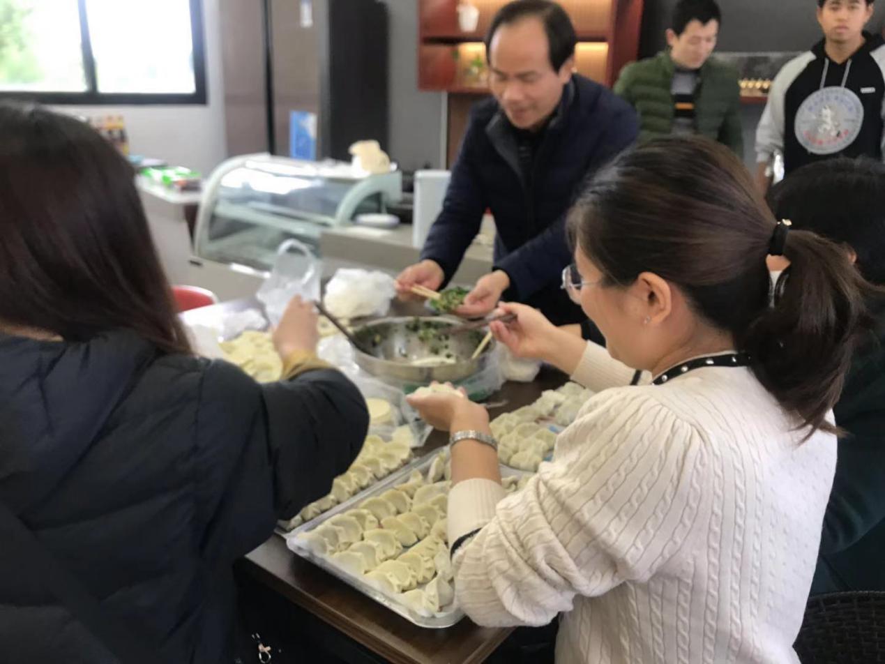 伴隨著一陣幸福的忙碌,一盤盤熱氣騰騰、香味四溢的餃子出鍋嘍,歡聚一堂的教職工們吃的津津有味,其樂融融,幸福之情無以言表!