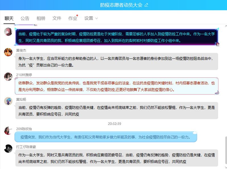 志愿者是倡導(dǎo)團(tuán)結(jié)友愛、助人為樂、見義勇為的社會(huì)標(biāo)桿,是當(dāng)代中國(guó)特色社會(huì)主義一項(xiàng)十分高尚的事業(yè)。弘揚(yáng)志愿者精神有利于全社會(huì)樹立奉獻(xiàn)、友愛、互助、進(jìn)步的時(shí)代新風(fēng)范。這是當(dāng)代有志青年的行動(dòng)指南,是當(dāng)代青年志愿者的光榮使命。軌道交通學(xué)院于1月30日開展線上“冬季疫情志愿者動(dòng)員”,動(dòng)員學(xué)院學(xué)生寒假期間積極參加社區(qū)、鄉(xiāng)村等組織的的各種志愿者活動(dòng)。本次線上動(dòng)員會(huì)覆蓋面廣,軌道交通學(xué)院學(xué)子通過不同方式參與到了本次活動(dòng)中。