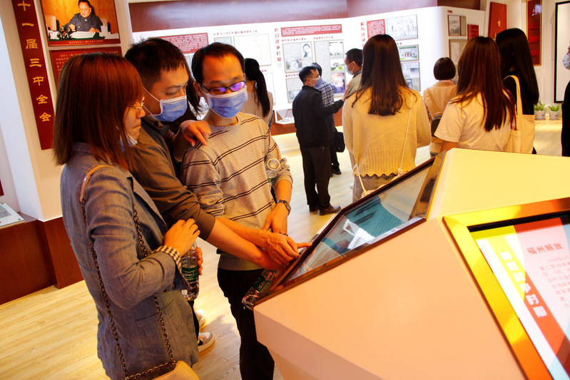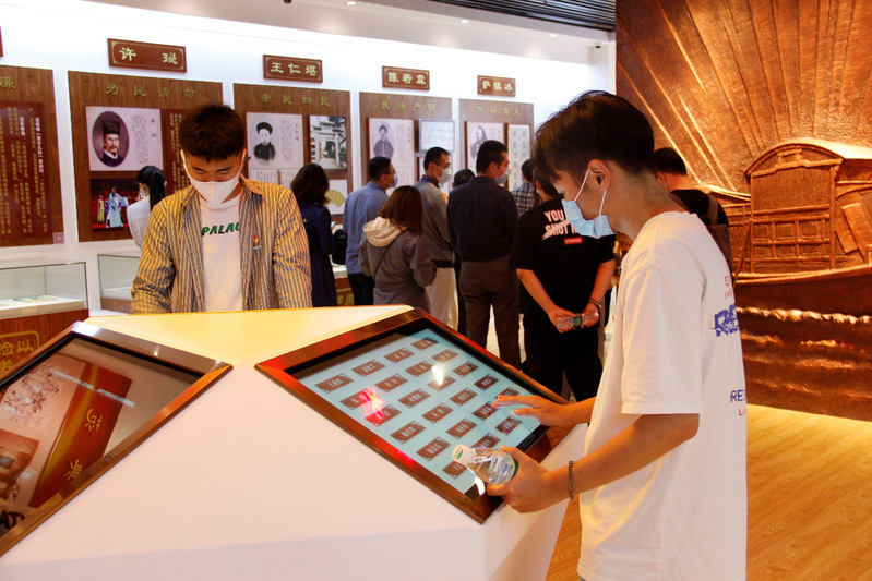 進入黨史廳和勤廉館,首先看到是鐫刻《共產(chǎn)黨宣言》的浮雕屏風(fēng)。在這里,大家體驗了“體感翻頁”的樂趣,回顧了中共黨史尤其是福州地方黨史重要事件和重要人物,了解了王荷波等9位福州歷史名人勤廉事跡,觀看了《人民領(lǐng)袖》紀(jì)錄短片,通過展廳中心的觸摸屏幕進行答題等。