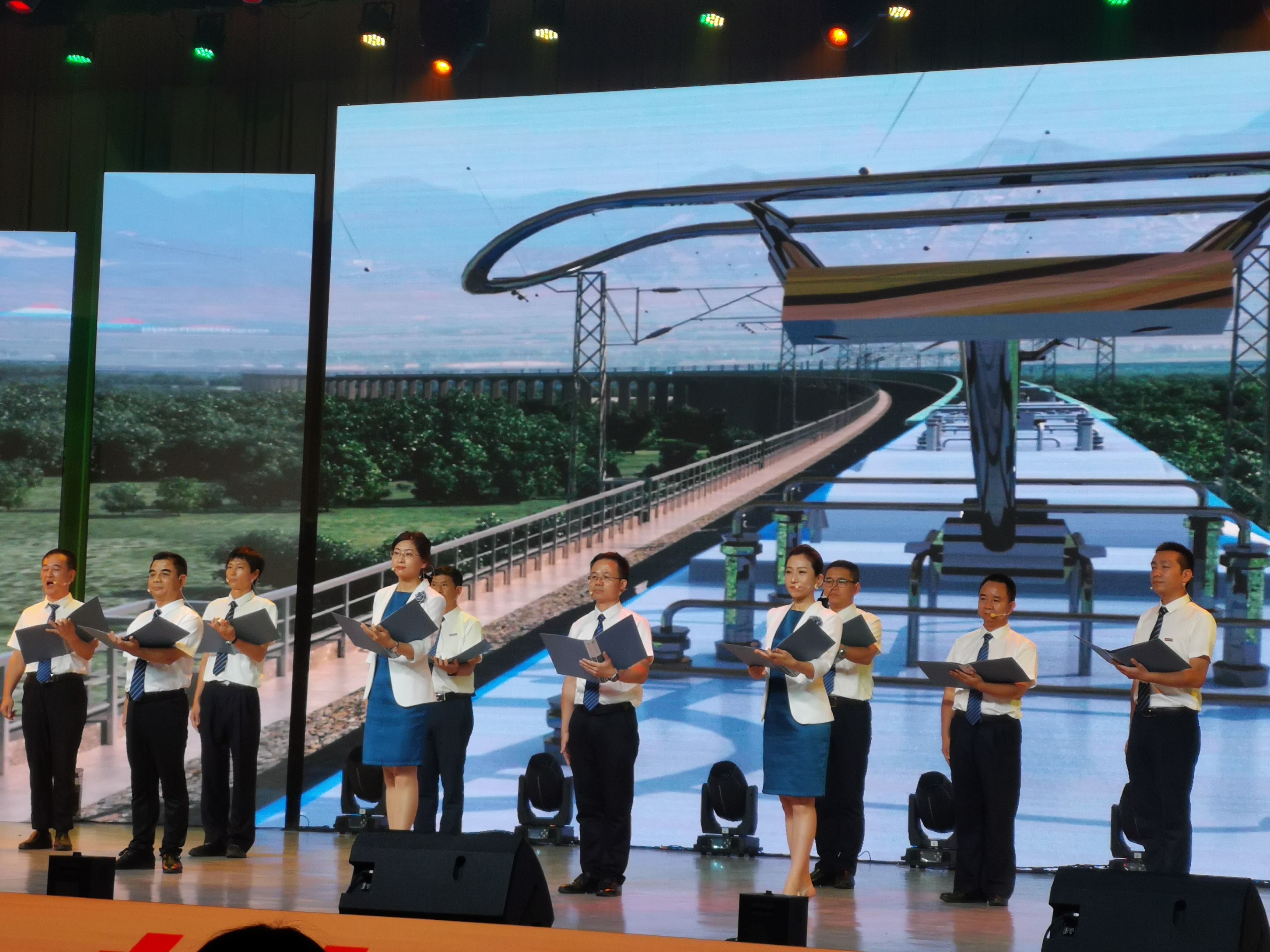 我院選送的節(jié)目詩朗誦《軌道交通譜新篇》參加了此次匯演,作品由孫基書記原創(chuàng),展現(xiàn)了學(xué)院全體師生對軌道交通事業(yè)的熱愛,抒發(fā)了團(tuán)結(jié)拼搏、積極向上的豪情壯志。隨著背景音樂的響起,由我院教職工代表組成的演出隊(duì)伍排著整齊的步伐登上舞臺(tái),表演開始激情澎湃的詩句從演出人員口中朗朗誦來,那堅(jiān)定的眼神、鏗鏘有力的聲調(diào),無不體現(xiàn)出我院教職工的驕傲與自信。演出結(jié)束場內(nèi)掌聲此起彼伏,觀眾臉上的贊許是對演員們盡心盡力演出最好的回報(bào)。