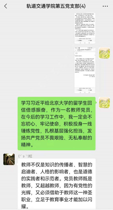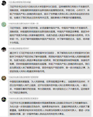 6月21日,習(xí)近平總書記給北京大學(xué)的留學(xué)生們回信,鼓勵(lì)他們更加深入地了解真實(shí)的中國(guó),把想法和體會(huì)介紹給更多的人,為促進(jìn)各國(guó)人民民心相通發(fā)揮積極作用。近日,軌道交通學(xué)院依托網(wǎng)絡(luò)平臺(tái)組織師生學(xué)習(xí)習(xí)近平總書記給北京大學(xué)的留學(xué)生們回信精神,大家倍感溫暖、倍感振奮、備受鼓舞,紛紛表示,要用所學(xué)講好中國(guó)故事,傳播好中國(guó)聲音,促進(jìn)各國(guó)人民民心相通,攜手共創(chuàng)健康美好的未來世界。