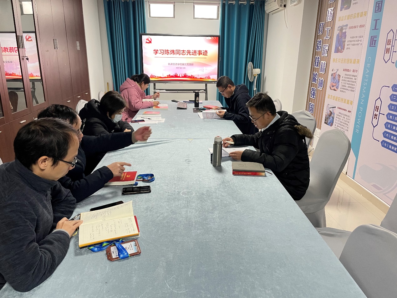 為貫徹落實中共福建省委教育工委、省教育廳《關(guān)于在全省教育系統(tǒng)深入開展向陳煒同志學(xué)習(xí)活動的通知》精神,2021年12月30日下午,軌道交通學(xué)院第三黨支部在圖書館校企合作室開展“陳煒同志先進事跡”專題學(xué)習(xí)會,會議由支部書記陳天炎主持,支部全體黨員參會。