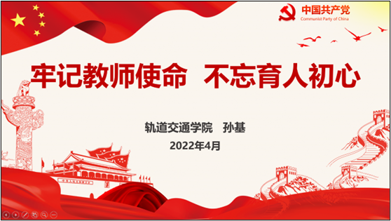 為進(jìn)一步推動常態(tài)化落實(shí)落細(xì)師德師風(fēng)建設(shè),軌道交通學(xué)院各黨支部在四月份開展“強(qiáng)師德 鑄師魂”、“爭當(dāng)'四有’好教師”、“汲取師德失范教訓(xùn)強(qiáng)化師德師風(fēng)建設(shè)”、“強(qiáng)師德 正師風(fēng) 鑄師魂”等為主題的黨日活動。黨員們紛紛表示,通過師德師風(fēng)黨日活動,牢固樹立了師德師風(fēng)底線意識,切實(shí)增強(qiáng)了遵守教師職業(yè)行為十項(xiàng)準(zhǔn)則的思想自覺和行動自覺,要更加以高標(biāo)準(zhǔn)的態(tài)度完成教師在日常教育教學(xué)活動中立德樹人、培養(yǎng)新時代社會主義建設(shè)者和接班人的教育教學(xué)目標(biāo),做黨和人民滿意的“四有”好老師!