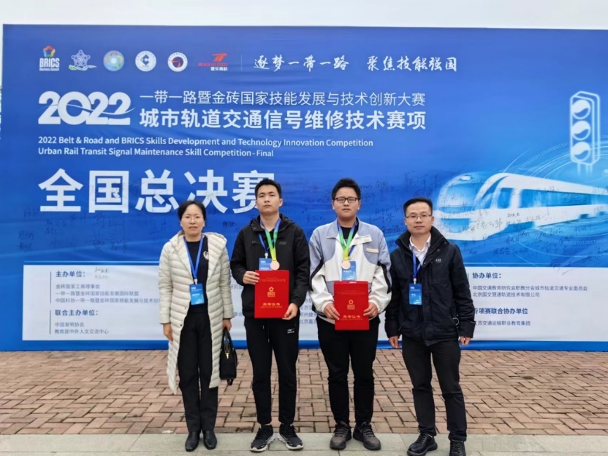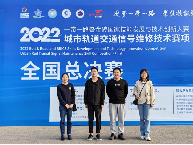 2023年4月21日-25日,2022-2023“一帶一路”暨金磚國家技能發(fā)展與技術創(chuàng)新大賽城市軌道交通信號維修技術賽項全國總決賽在南京交通職業(yè)技術學院展開激烈角逐。軌道交通學院派出陳偉、林達銀兩位同學代表學校參賽并獲得全國三等獎的好成績。
