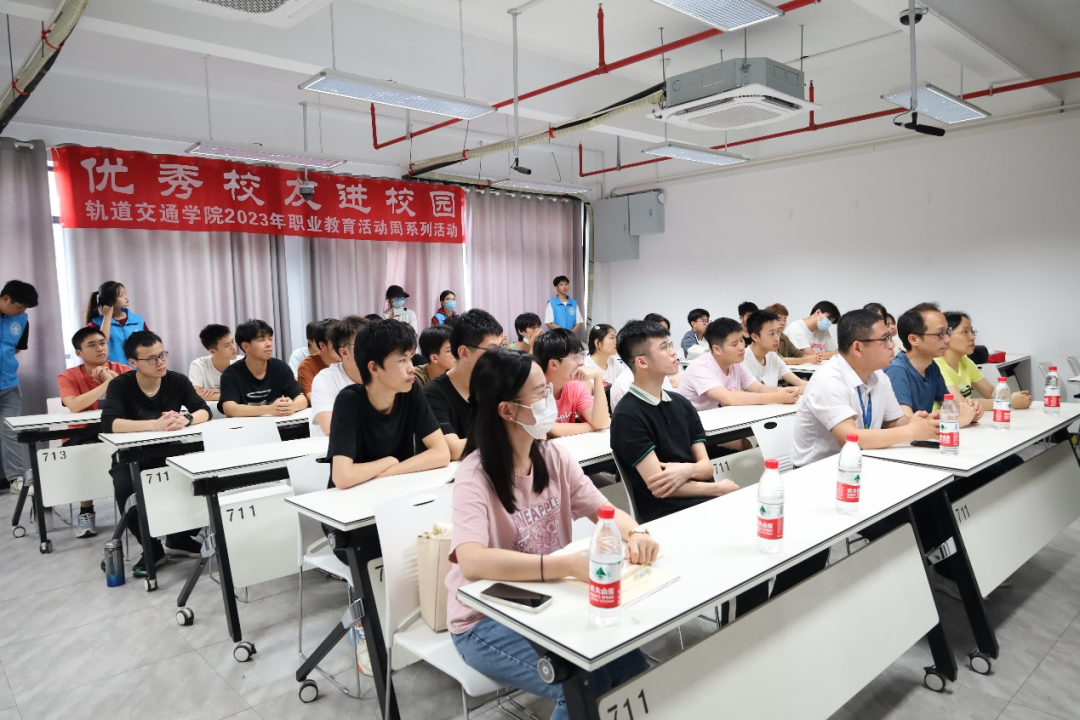 本次“優(yōu)秀校友進(jìn)校園”活動使同學(xué)們近距離接觸優(yōu)秀校友,充分發(fā)揮優(yōu)秀校友的榜樣示范、價值引領(lǐng)作用,進(jìn)一步引導(dǎo)學(xué)生職業(yè)生涯規(guī)劃,樹立正確的擇業(yè)觀,赴重點單位、行業(yè)就業(yè)。本次活動也是軌道交通學(xué)院“2023年職業(yè)教育活動周”系列活動之一,弘揚工匠精神,勇當(dāng)技能先鋒,讓職教添彩,讓技能強(qiáng)國。