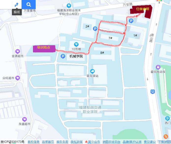 2.福州南站—福建船政交通職業(yè)學院校內酒店:福州南站乘167路48分鐘|10.9公里|步行470米即到福建船政交通職業(yè)學院,或乘出租車直達,約24元。