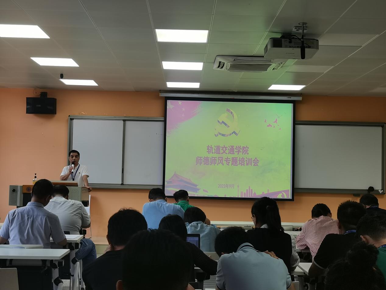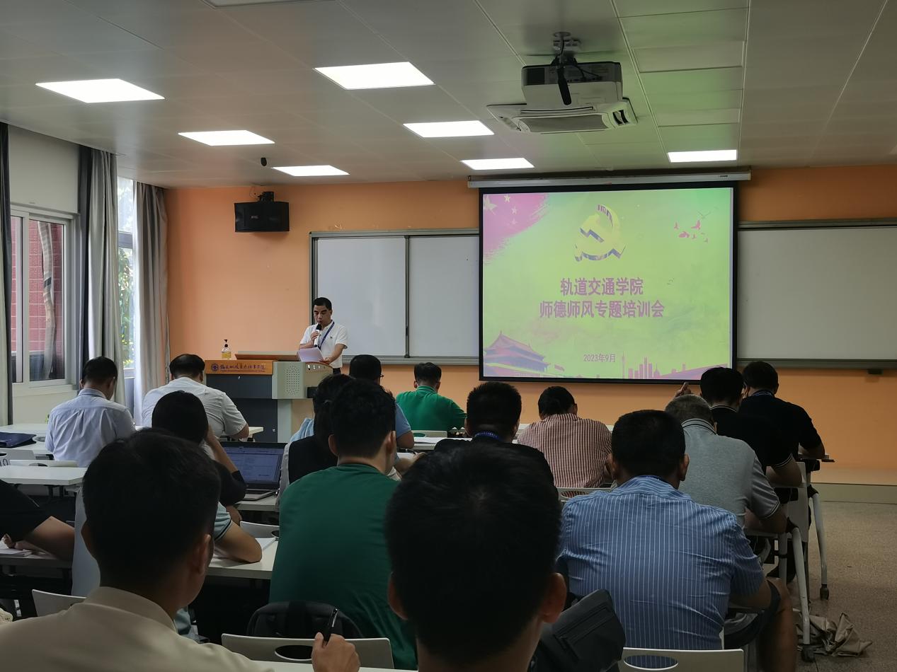 為加強(qiáng)我院師德師風(fēng)建設(shè),培養(yǎng)高素質(zhì)教師隊伍,根據(jù)學(xué)校師德師風(fēng)建設(shè)工作部署和要求,2023年9月20日,軌道交通學(xué)院組織全體教職工學(xué)習(xí)《習(xí)近平致信全國優(yōu)秀教師代表向全國廣大教師和教育工作者致以節(jié)日問候和誠摯祝?!芳啊督逃抗_曝光第十三批7起違反教師職業(yè)行為十項準(zhǔn)則典型案例》,本次師德師風(fēng)專題學(xué)習(xí)會議由軌道交通學(xué)院黨總支書記孫基主持。