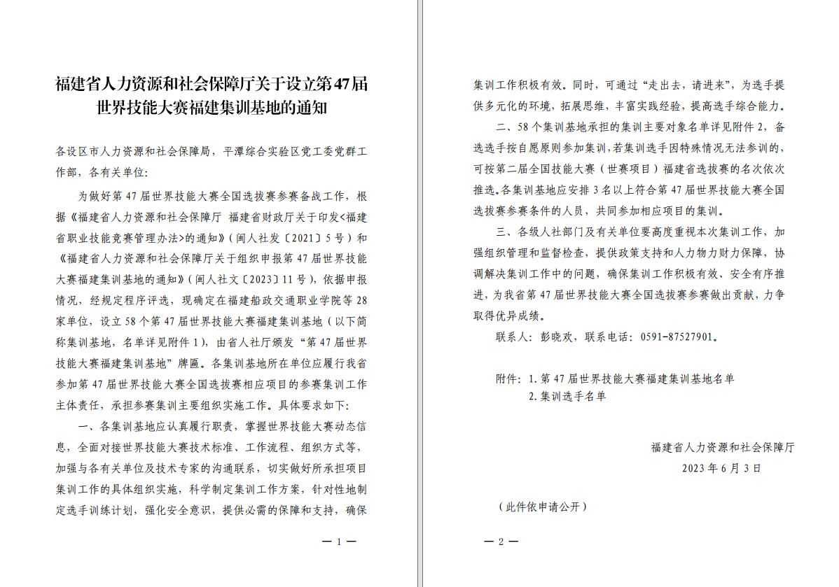 根據《福建省人力資源和社會保障廳福建省財政廳關于印發(fā)<福建省職業(yè)技能競賽管理辦法>的通知》(閩人社發(fā)〔2021〕5號)和《福建省人力資源和社會保障廳關于組織申報第47屆世界技能大賽福建集訓基地的通知》(閩人社文〔2023〕11號)文件,我院入選第47屆世界技能大賽“軌道車輛技術”賽項福建集訓基地。