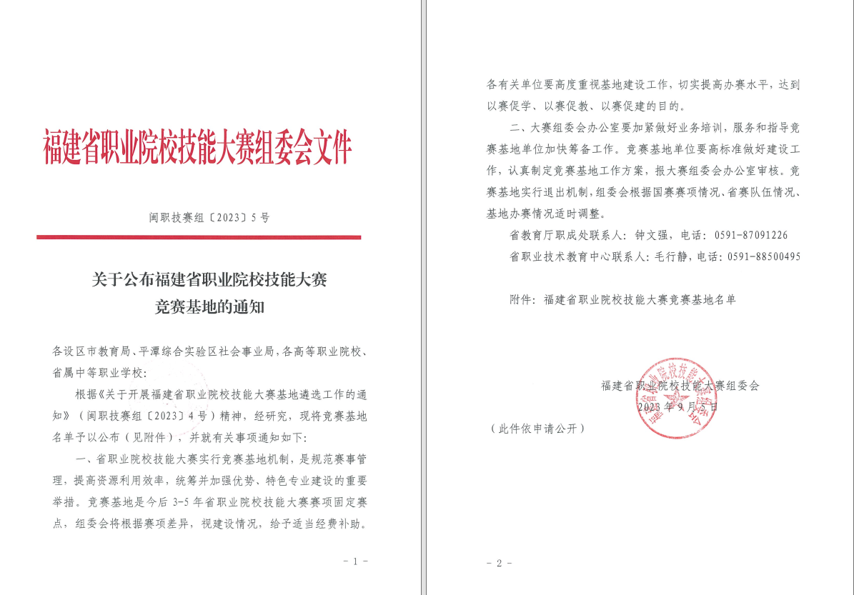 我院獲批福建省職業(yè)院校技能大賽3個(gè)賽項(xiàng)競賽基地